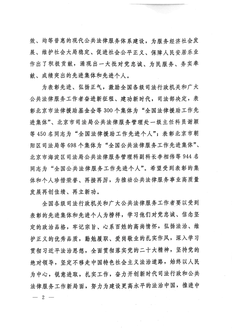 司法部关于表彰全国法律援助和公共法律服务工作先进集体先进个人的决定