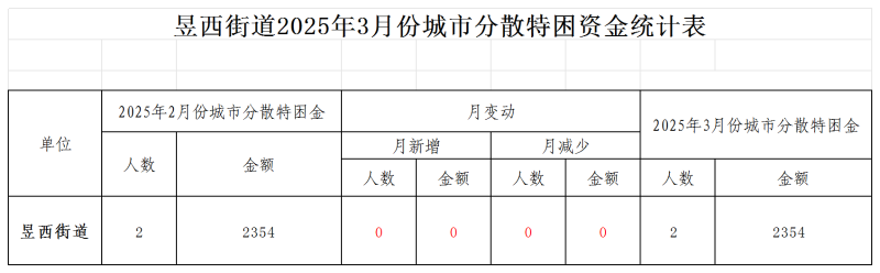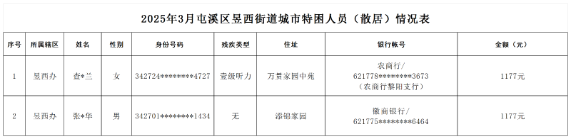 2025年3月屯溪区昱西街道城市特困人员(散居)情况表
