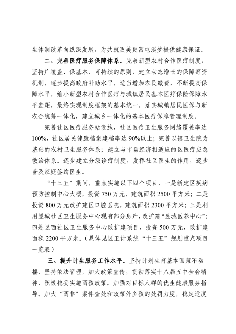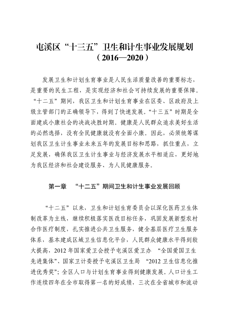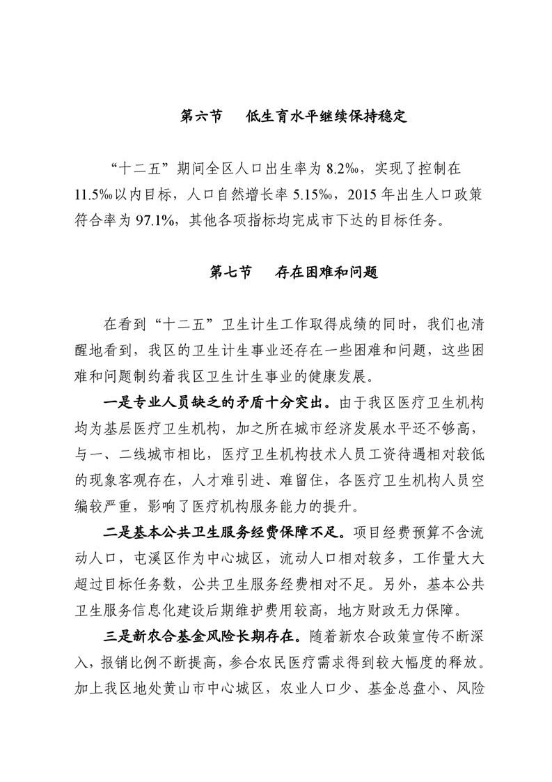 屯溪区“十三五”卫生和计生事业发展规划(2016-2020)