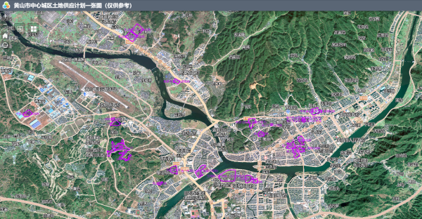 2021年4月2日,黄山市自然资源和规划局网站发布了2021年度中心城区土地出让计划信息,为营造更加优良的营商环境,方便企业和群众直观、准确地查看每个地块的详细信息,依托智慧黄山时空信息平台公众版搭建了“黄山市土地供应计划一张图”(访问网址:https://plat.huangshan.gov.cn/arcgis/apps/webappviewer/index.html?id=7c9a980908fe46528914a25714a348fb)。