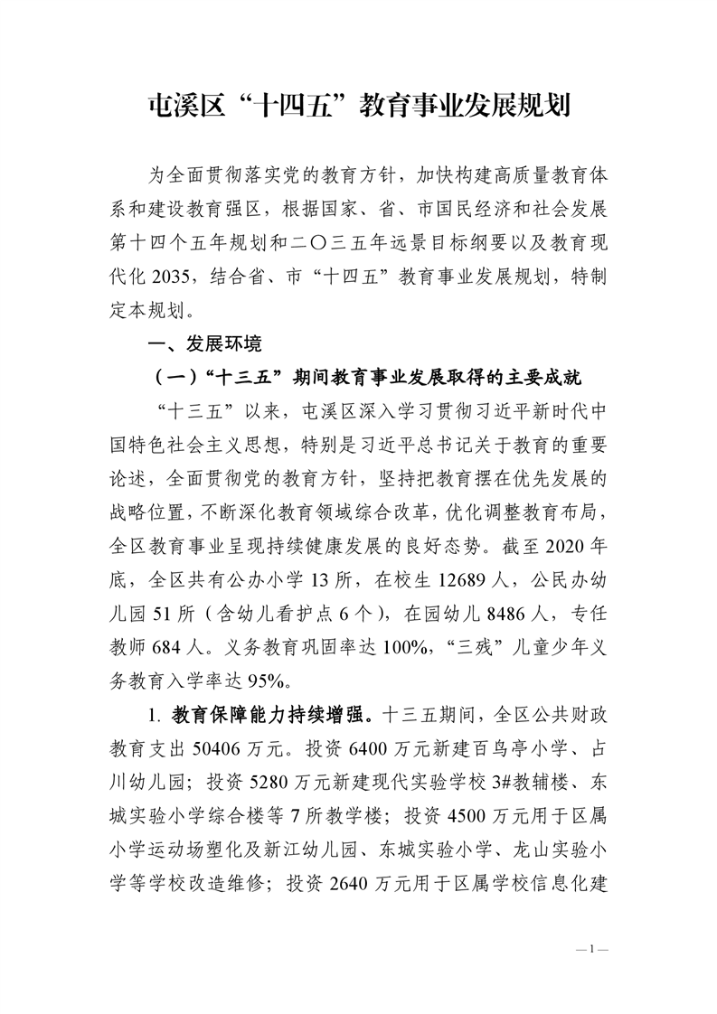 屯溪区“十四五”教育事业发展规划