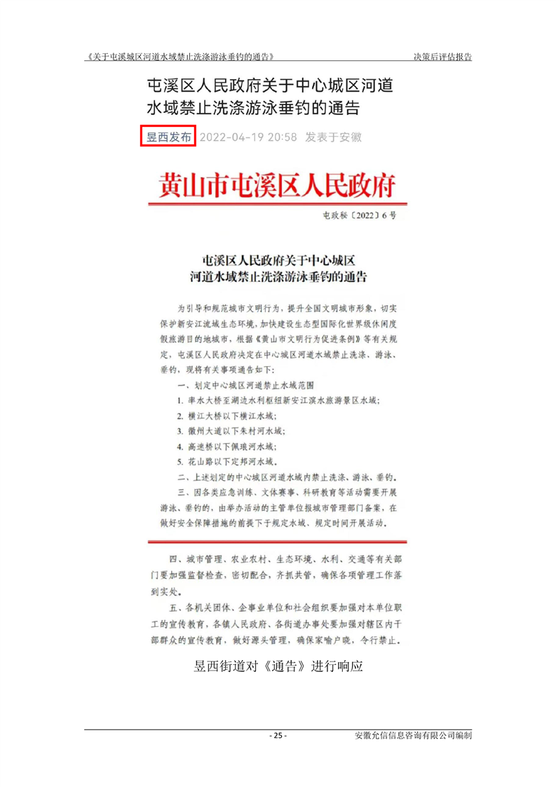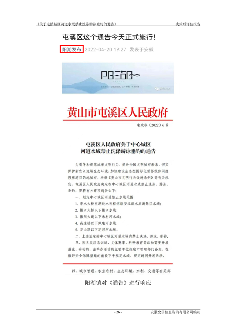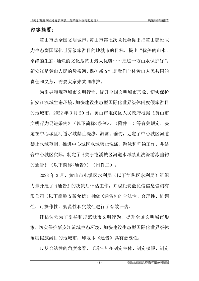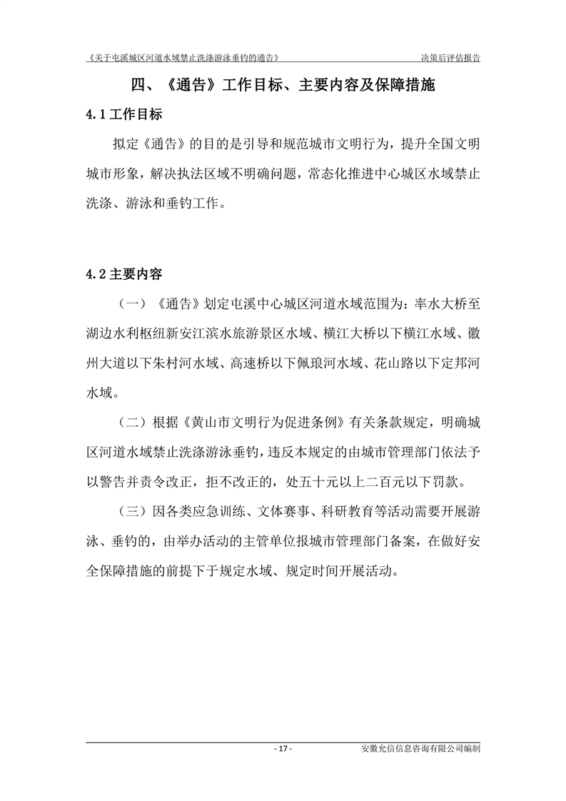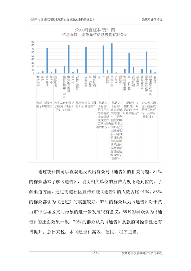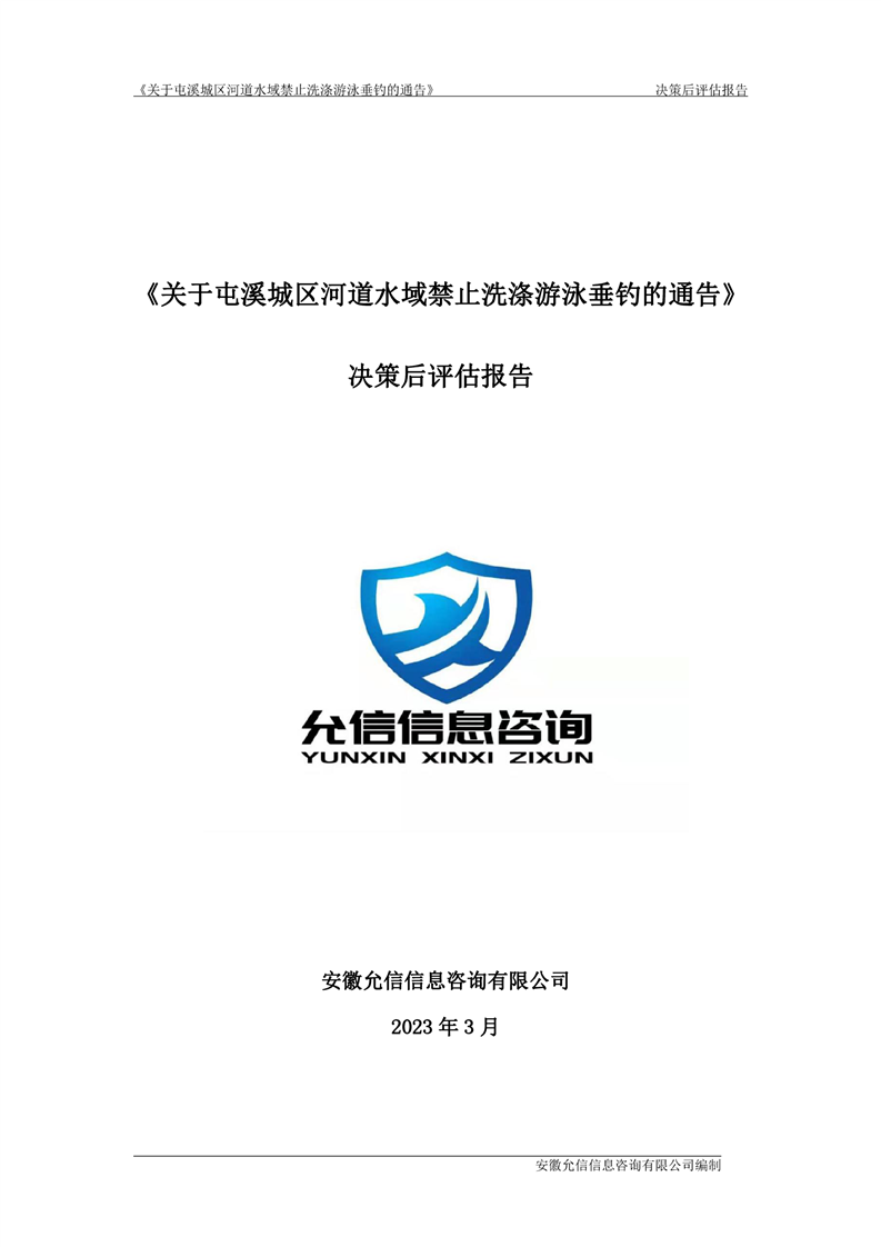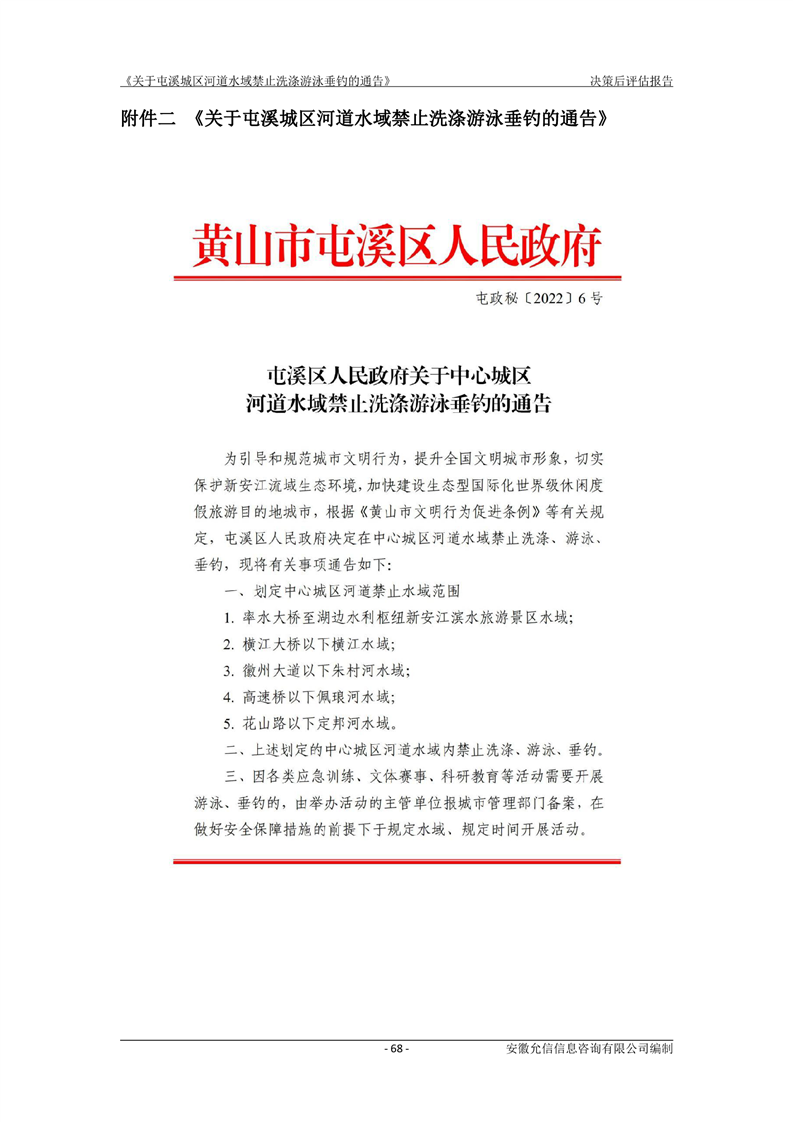 《关于屯溪城区河道水域禁止洗涤游泳垂钓的通告》决策后评估报告