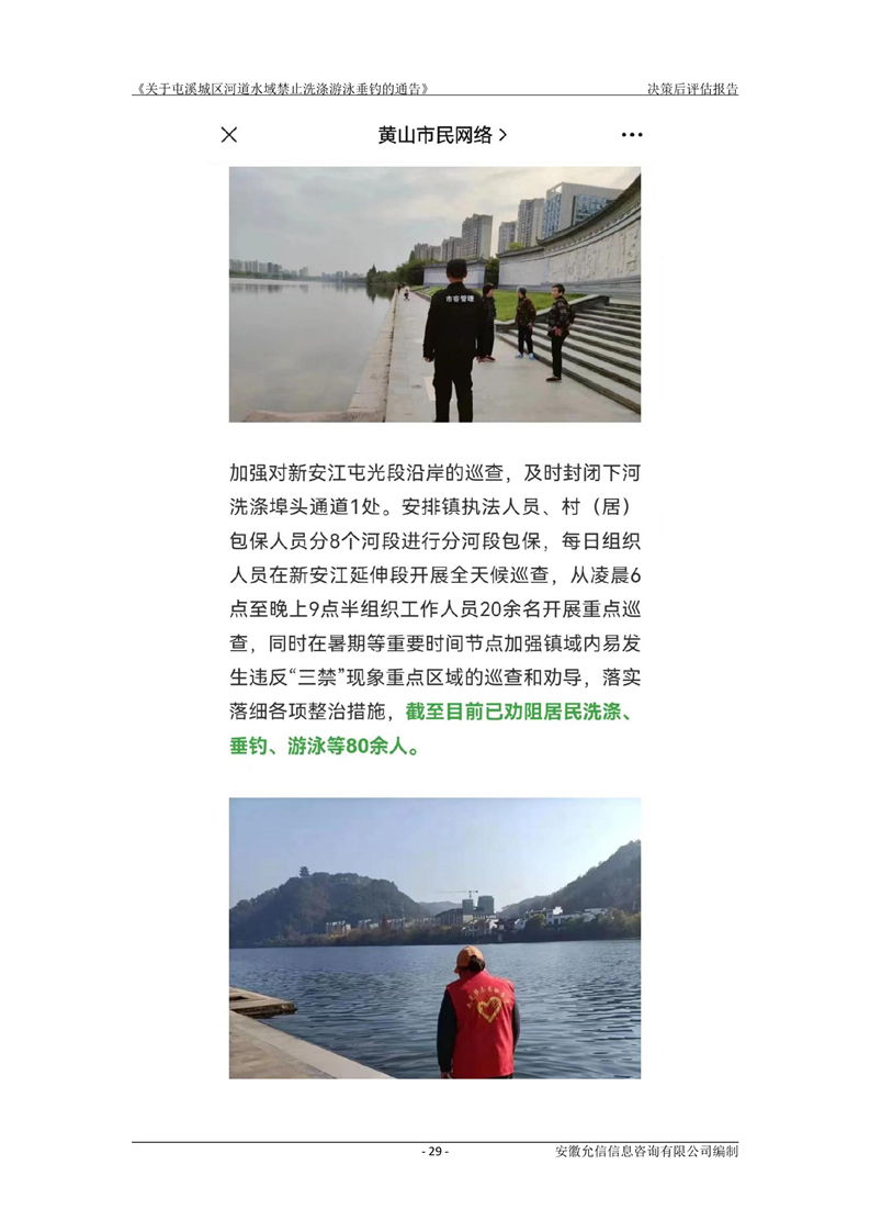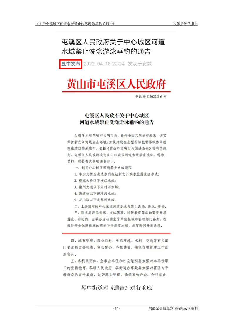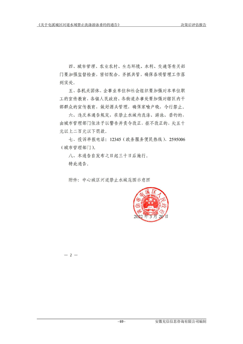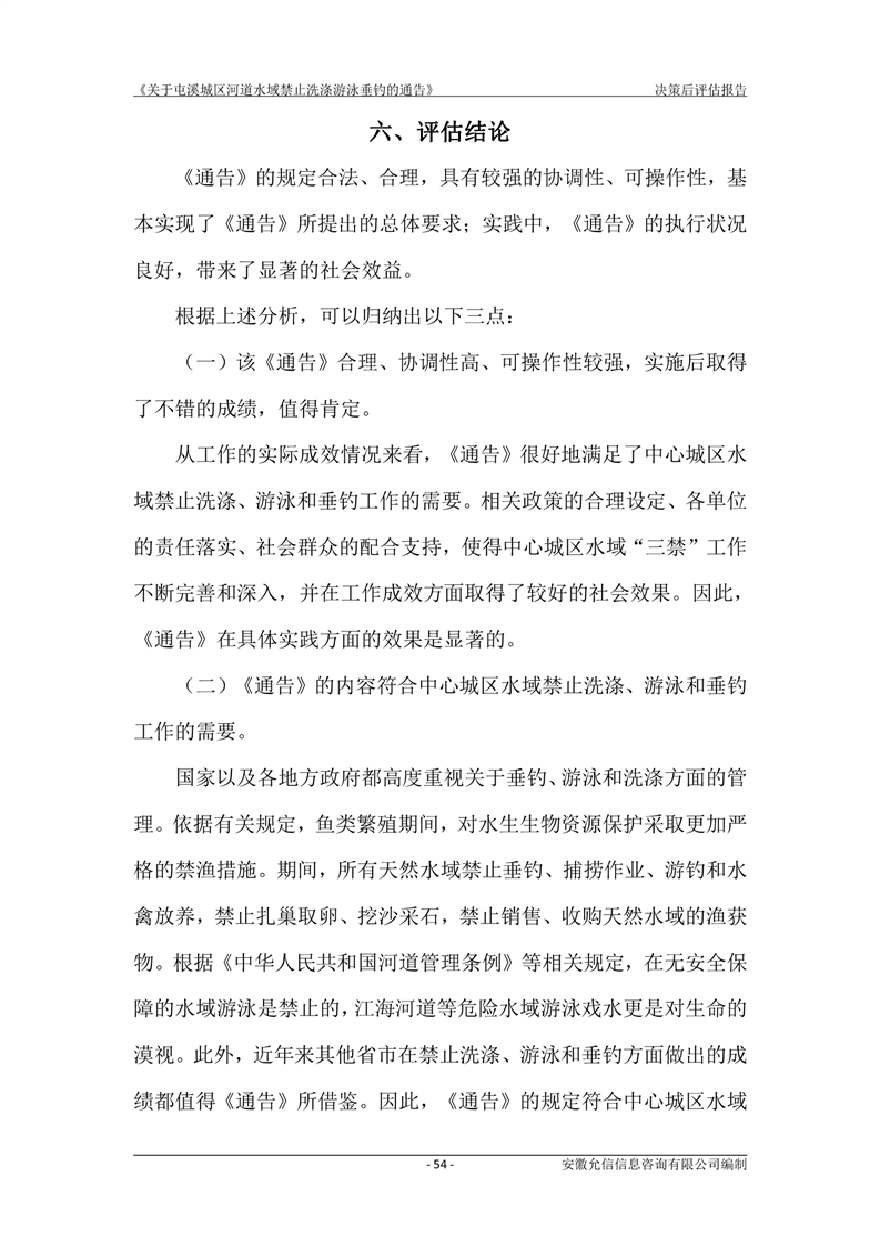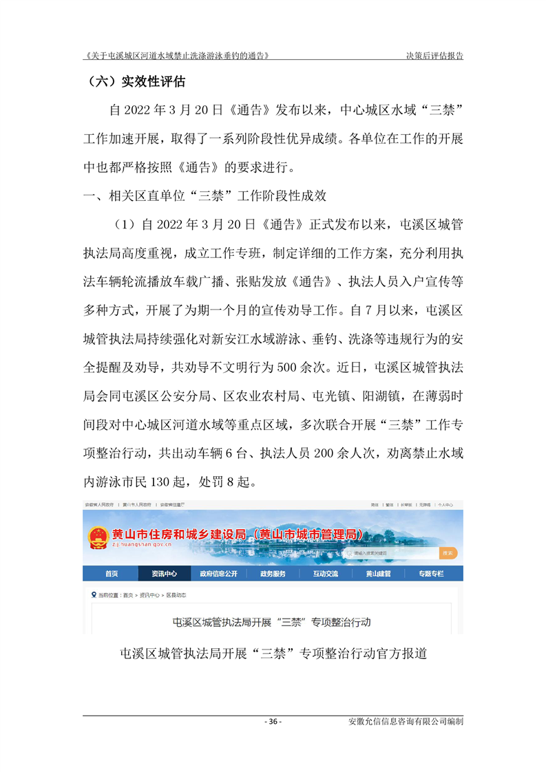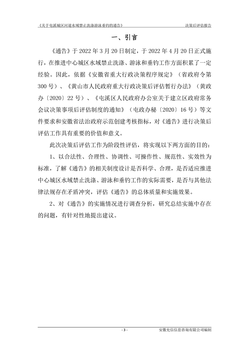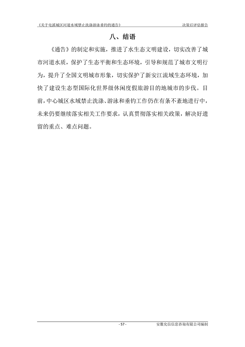 《关于屯溪城区河道水域禁止洗涤游泳垂钓的通告》决策后评估报告