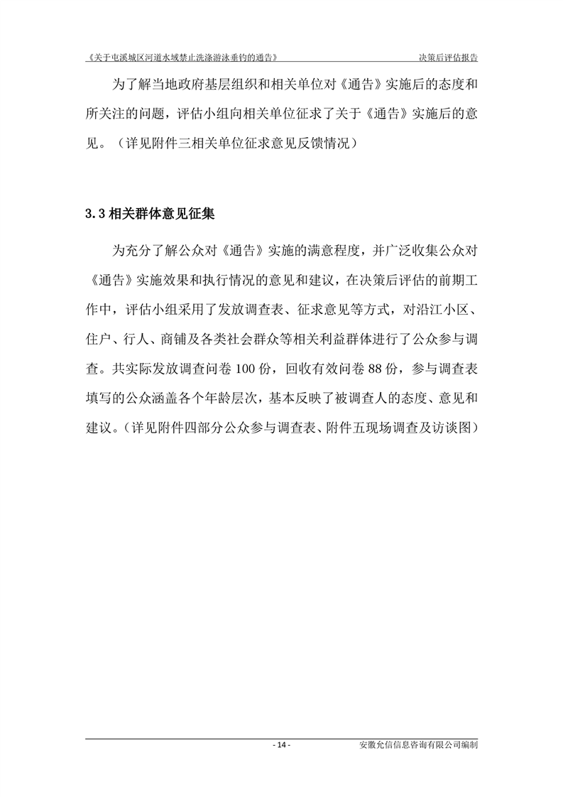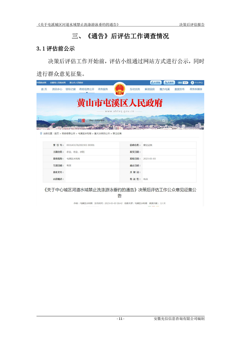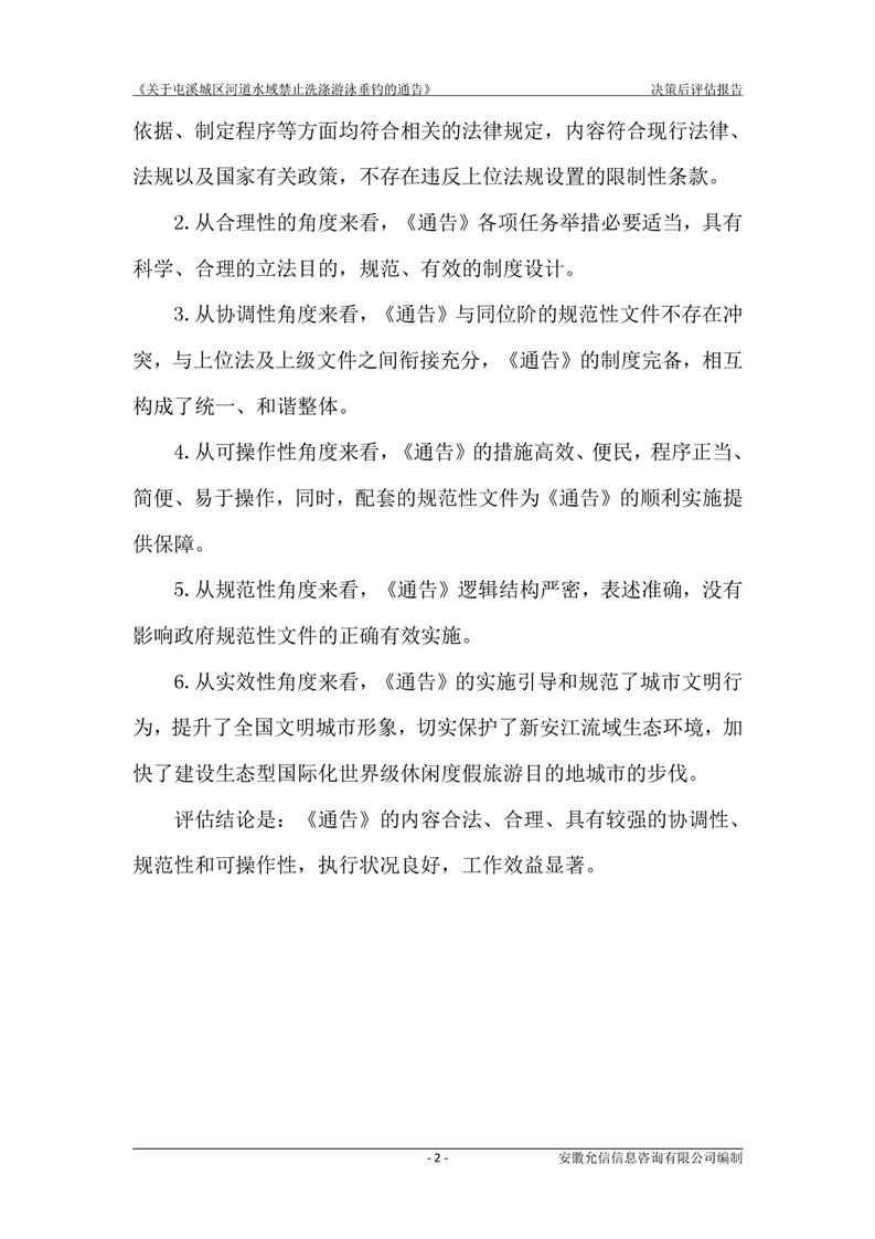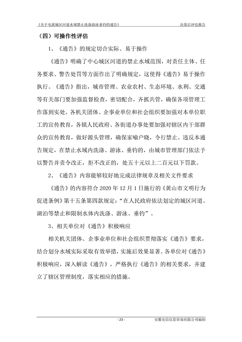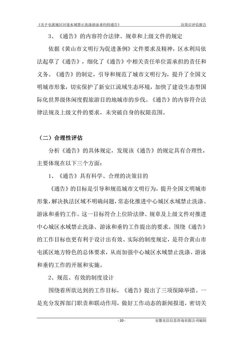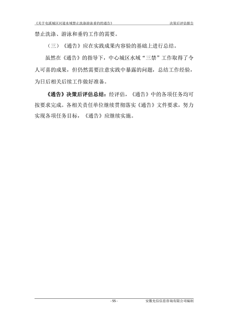 《关于屯溪城区河道水域禁止洗涤游泳垂钓的通告》决策后评估报告