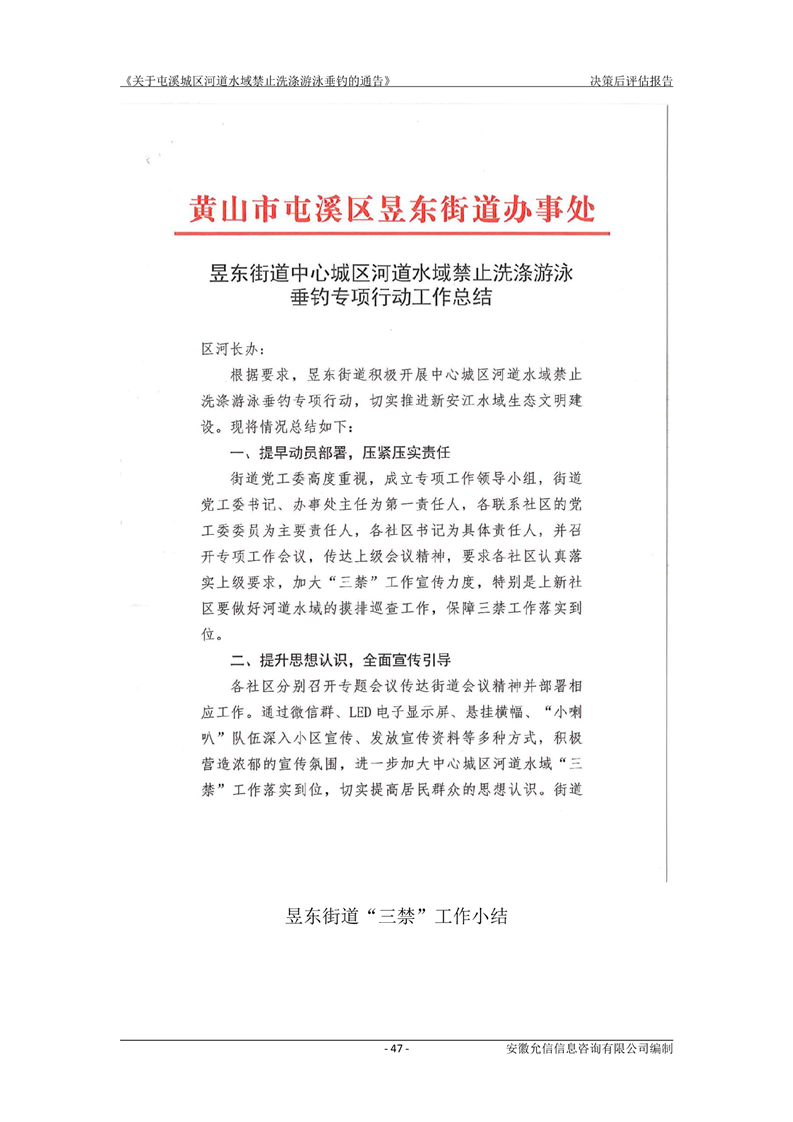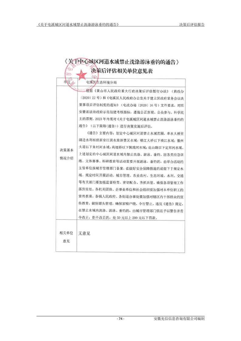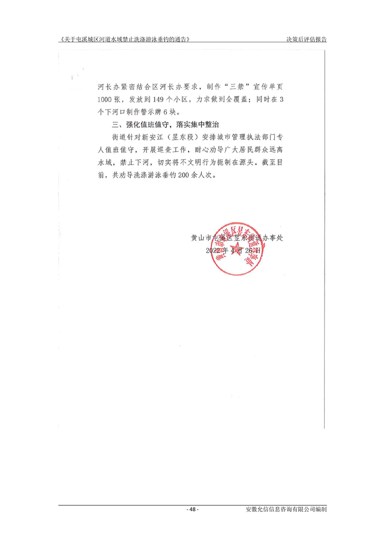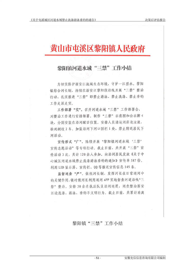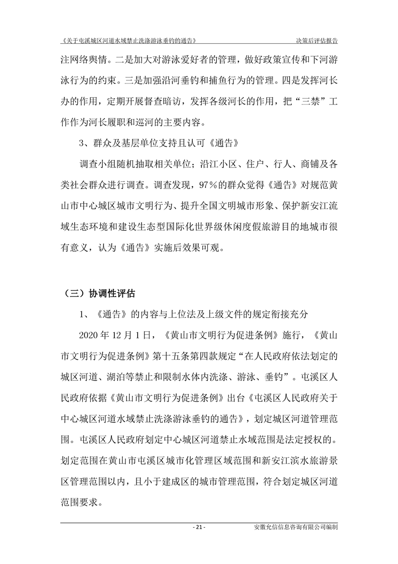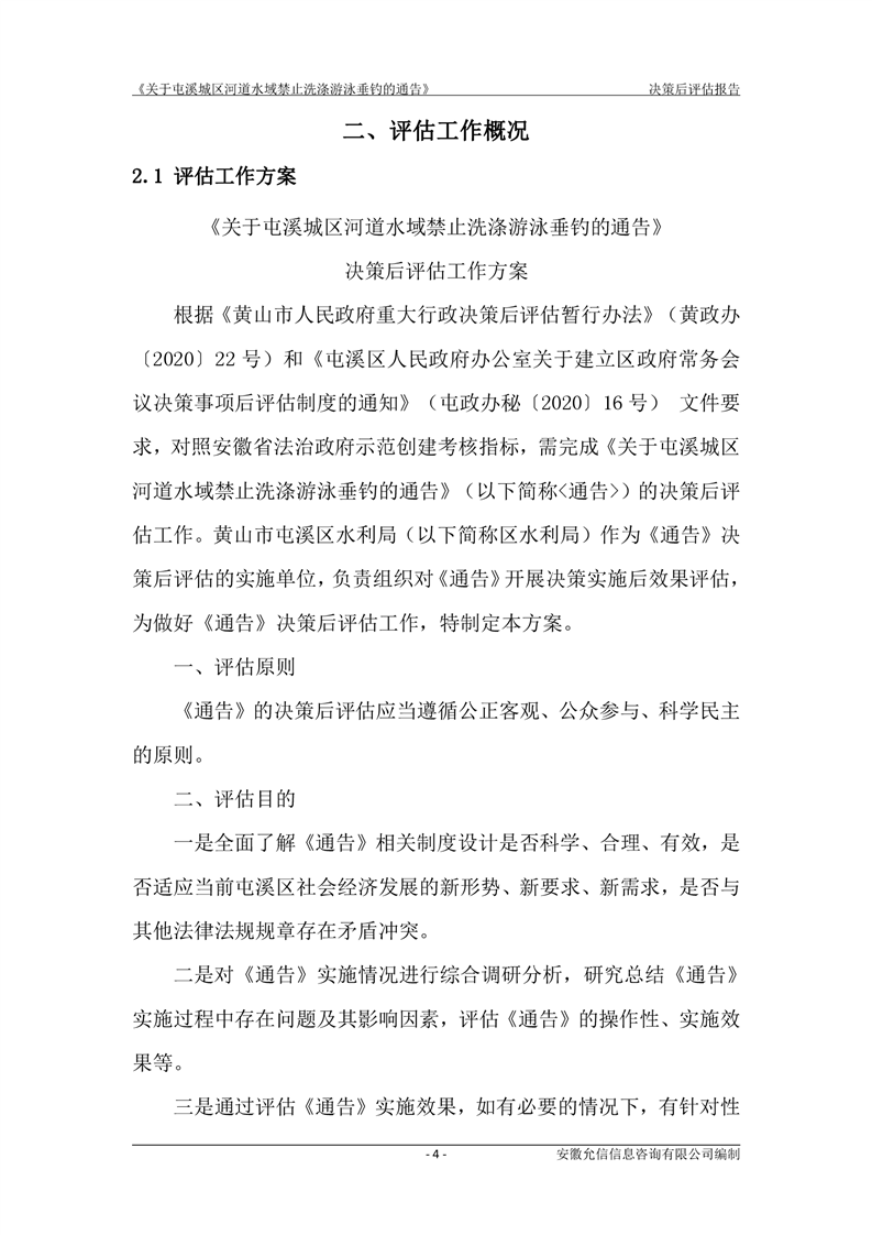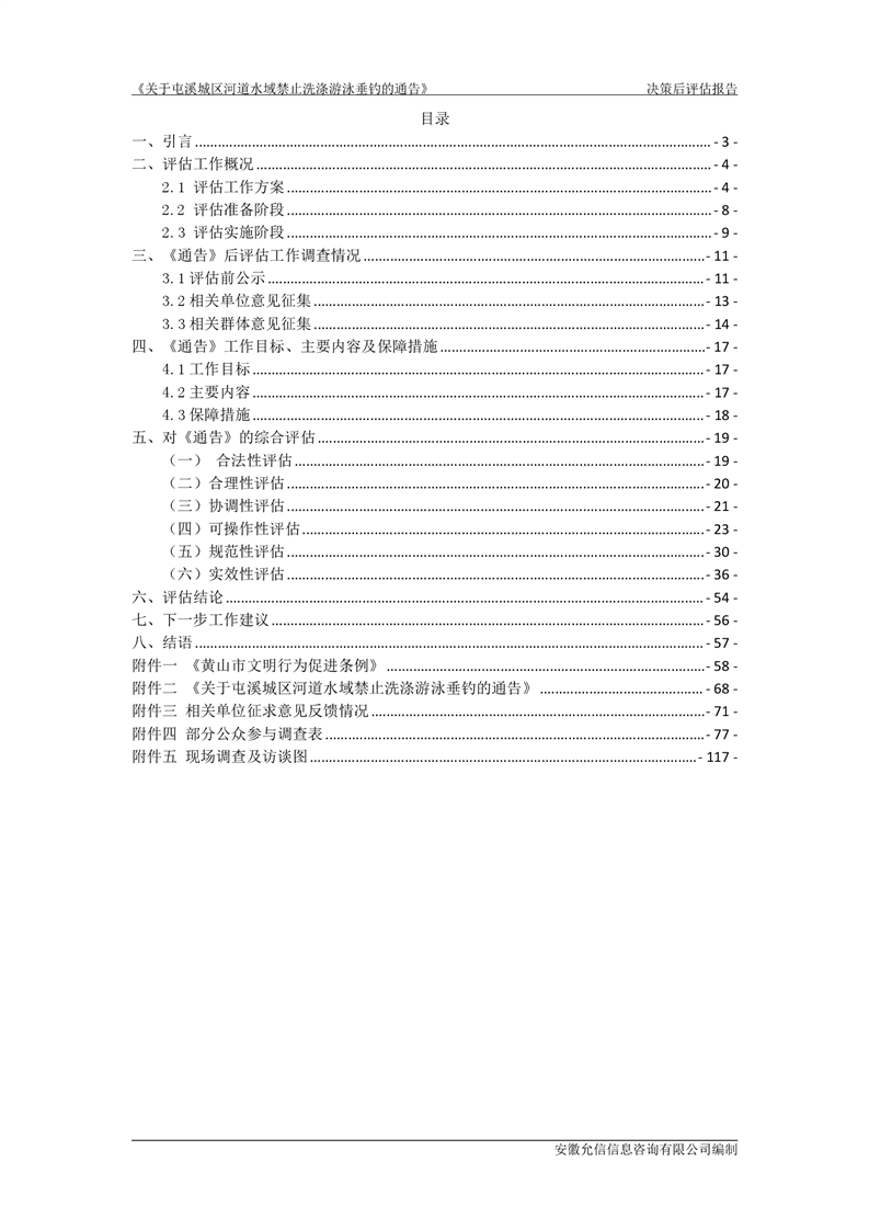 《关于屯溪城区河道水域禁止洗涤游泳垂钓的通告》决策后评估报告