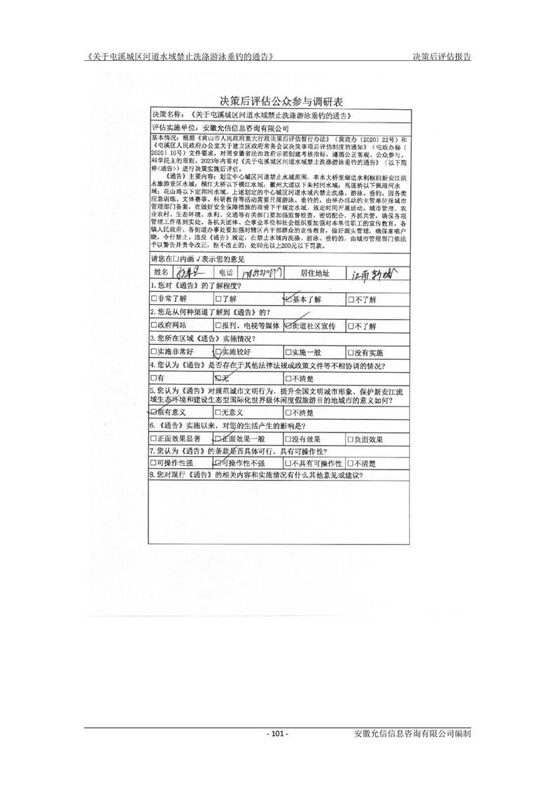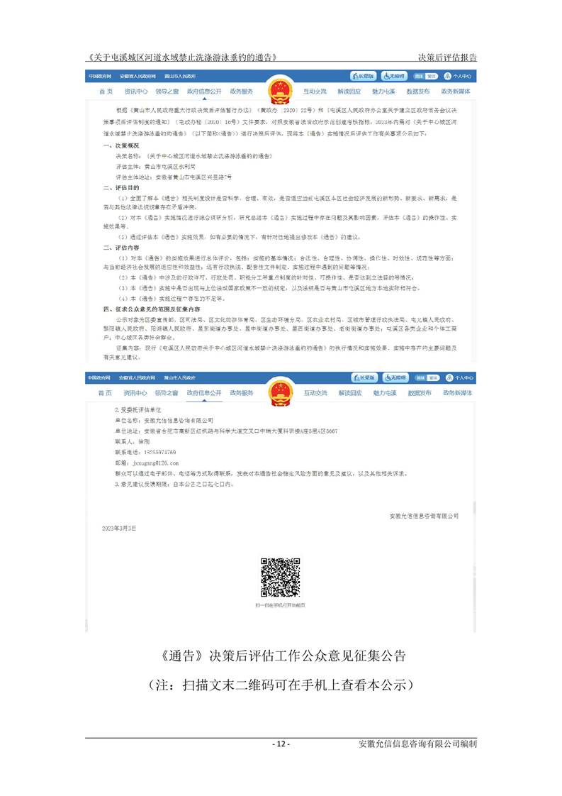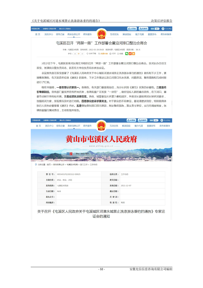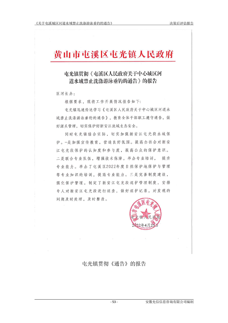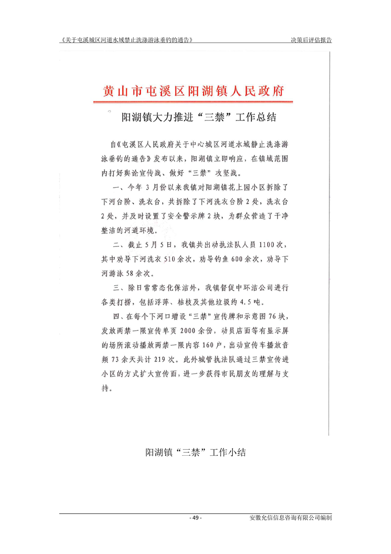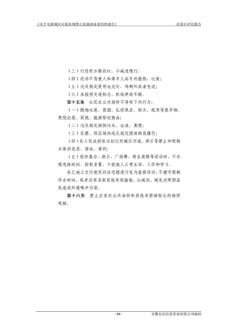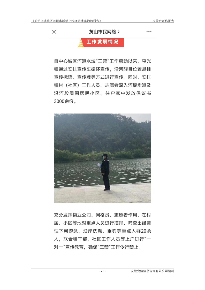 《关于屯溪城区河道水域禁止洗涤游泳垂钓的通告》决策后评估报告