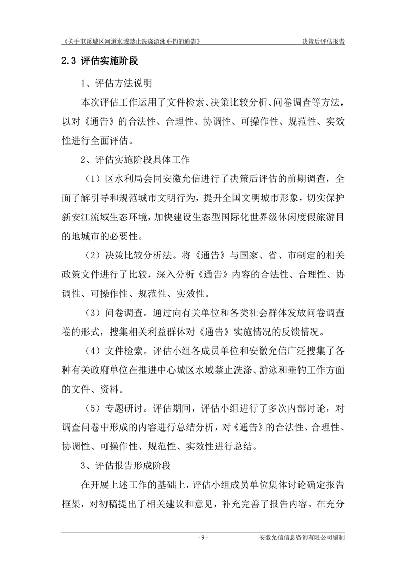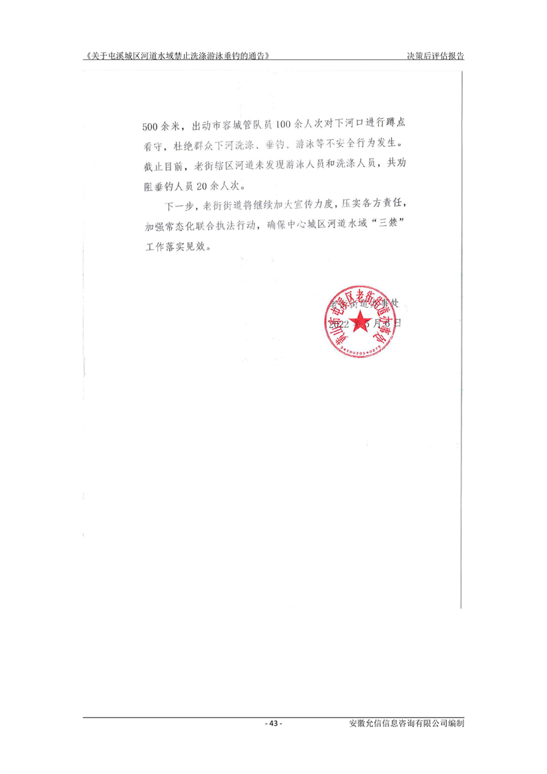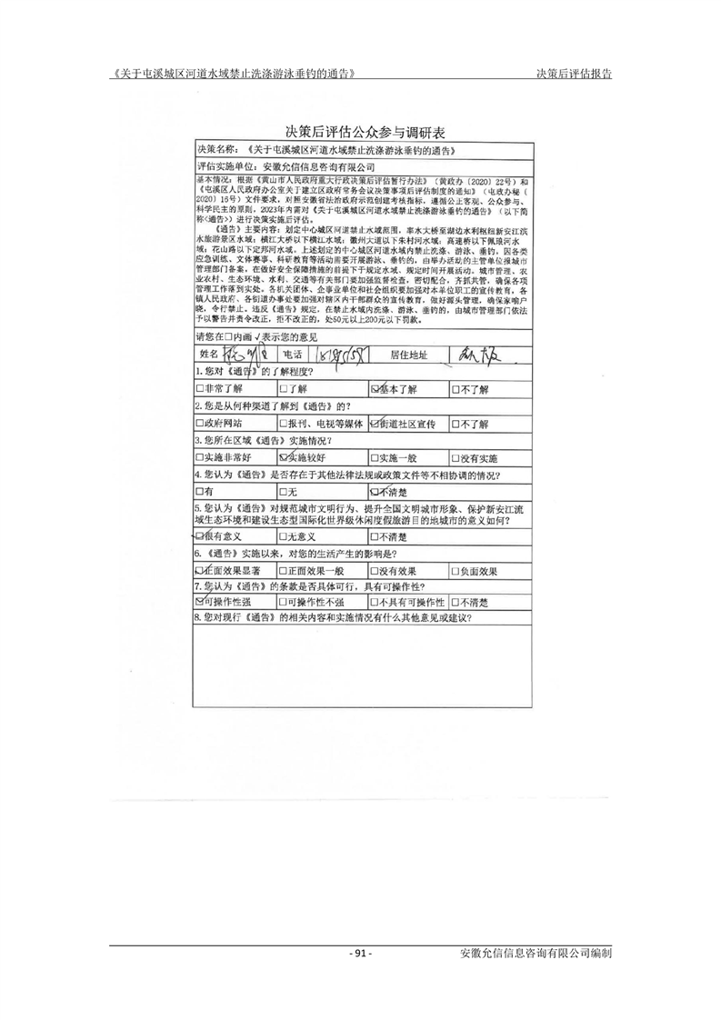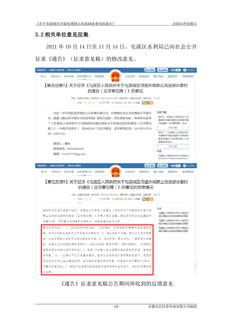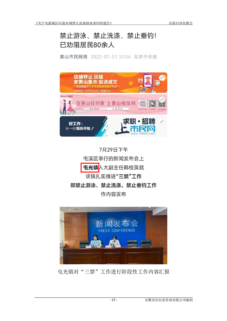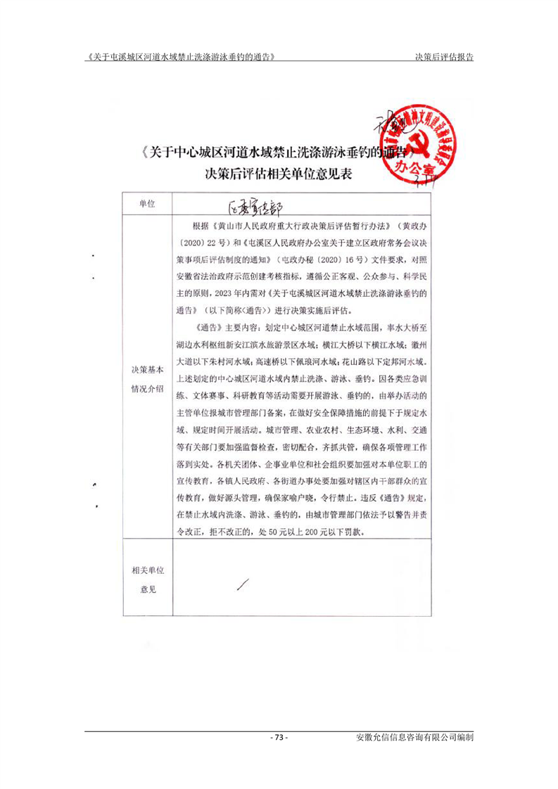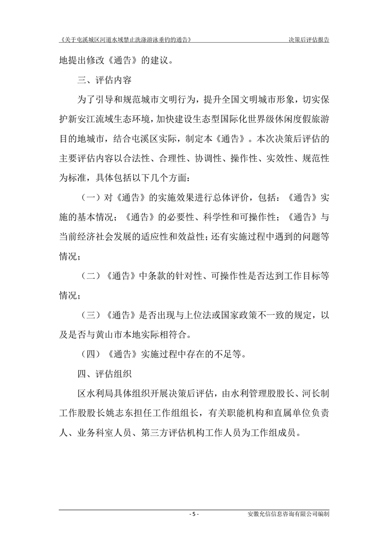 《关于屯溪城区河道水域禁止洗涤游泳垂钓的通告》决策后评估报告