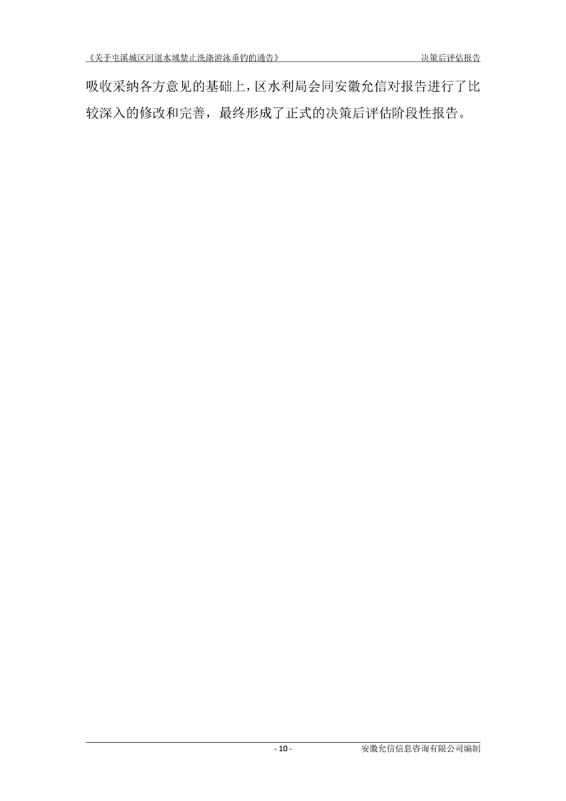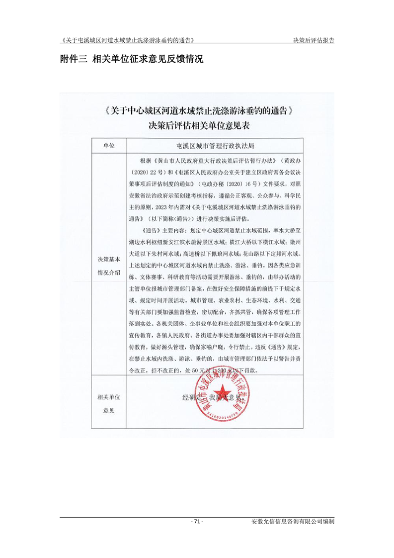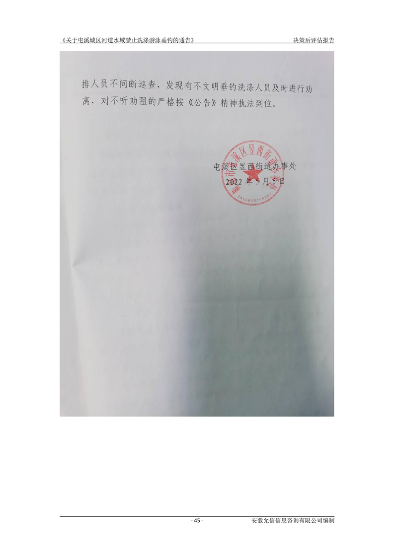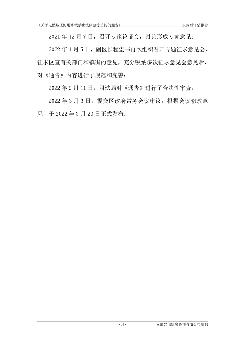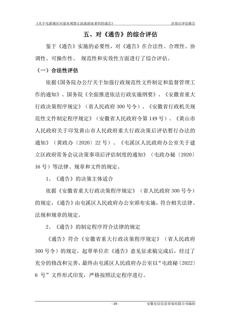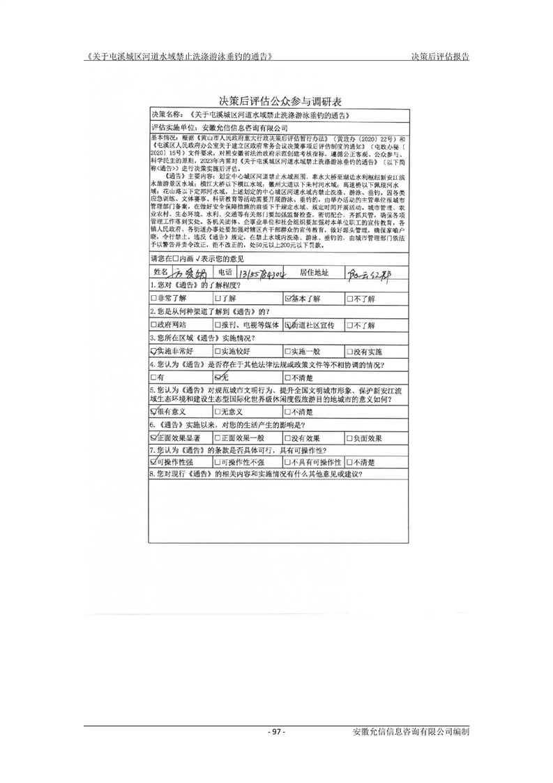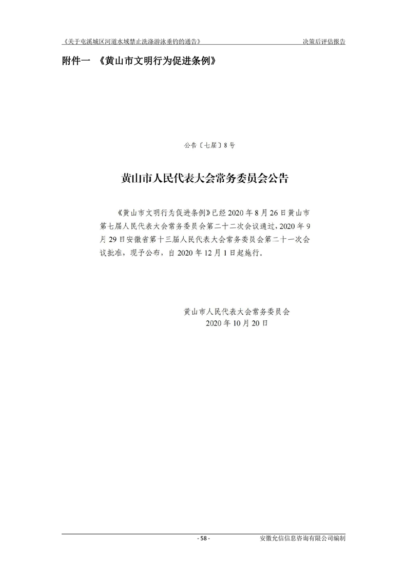 《关于屯溪城区河道水域禁止洗涤游泳垂钓的通告》决策后评估报告