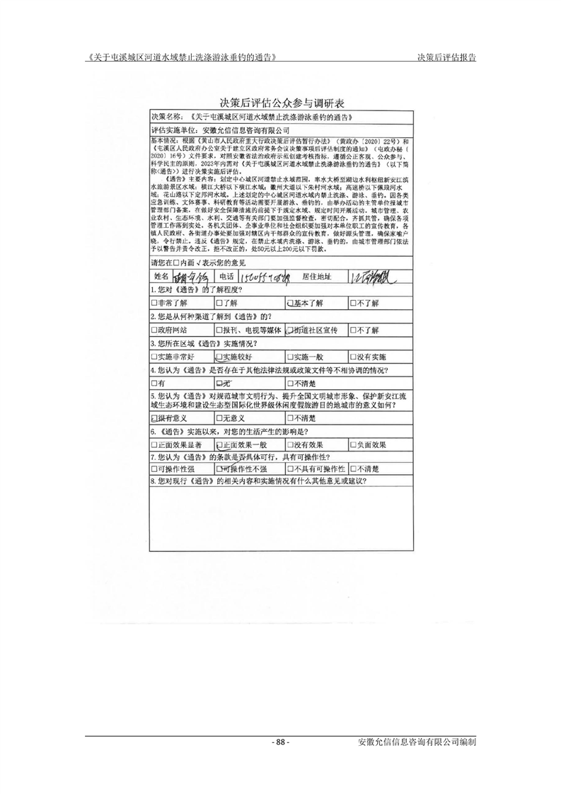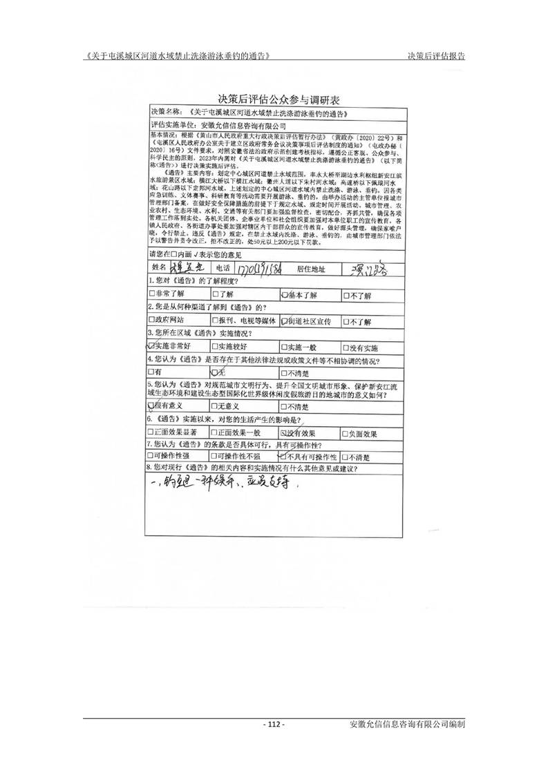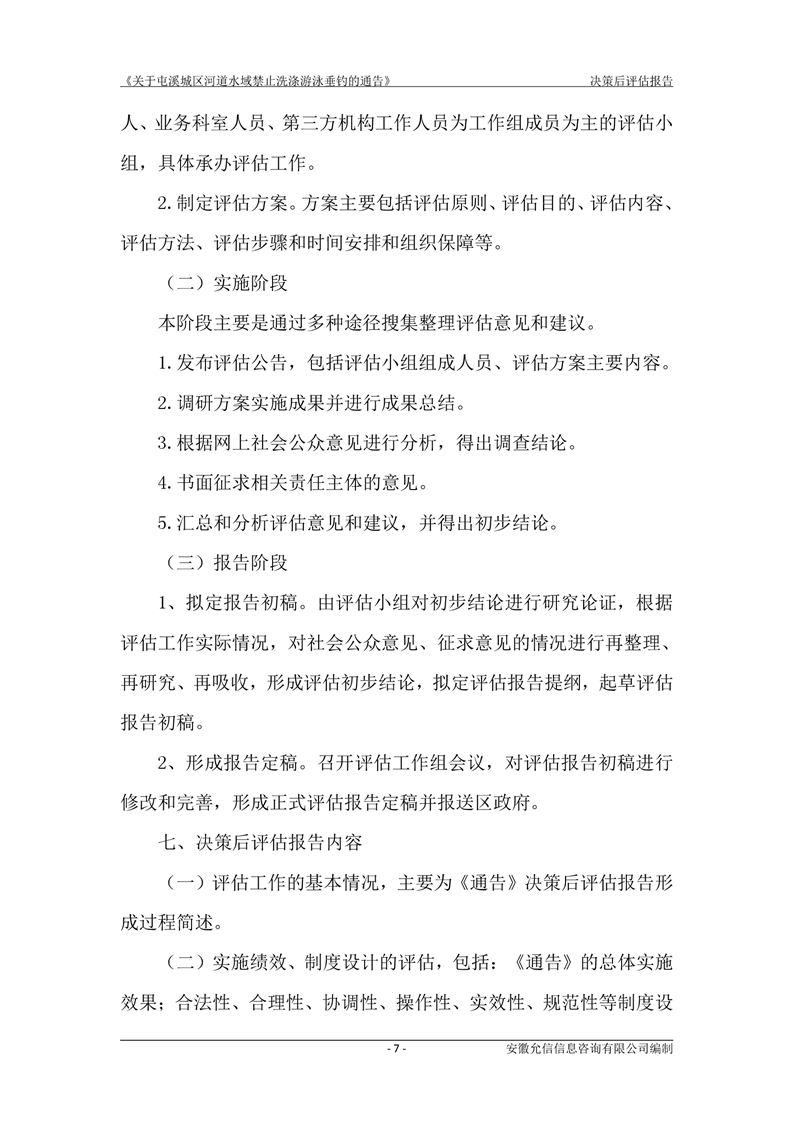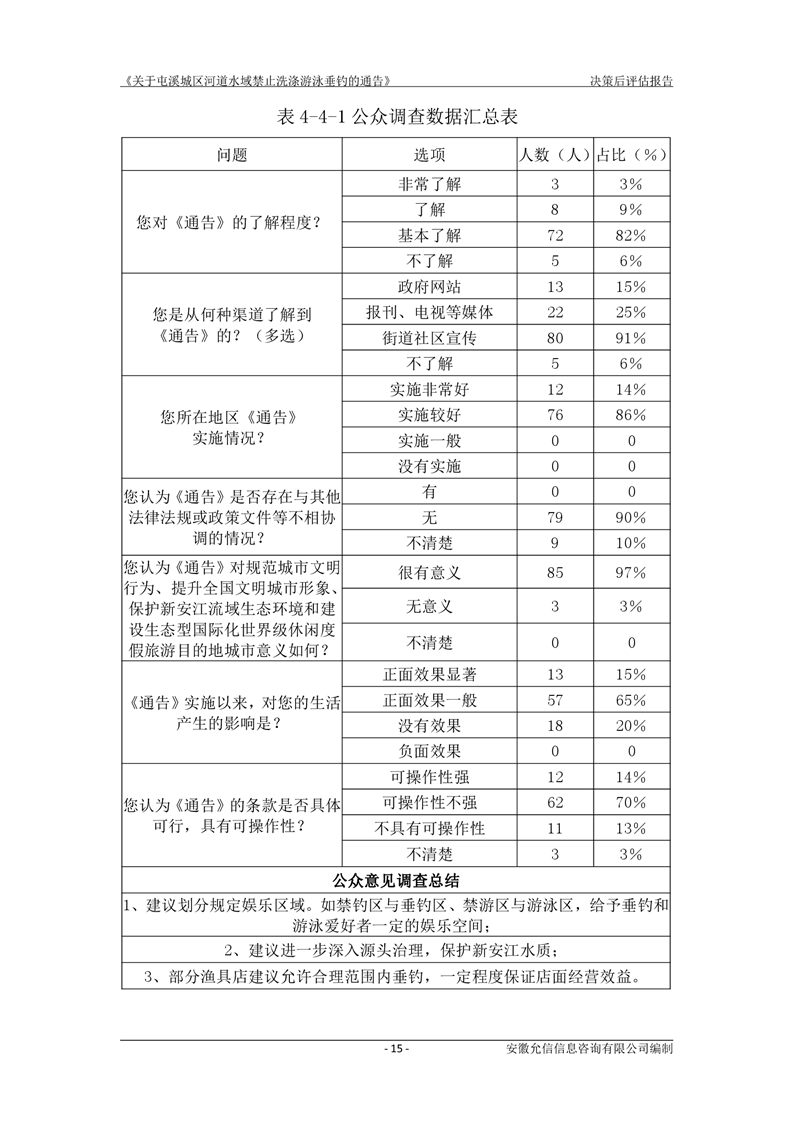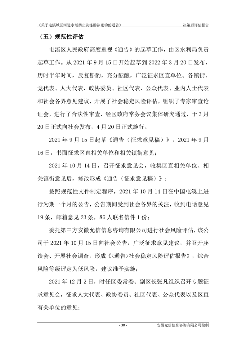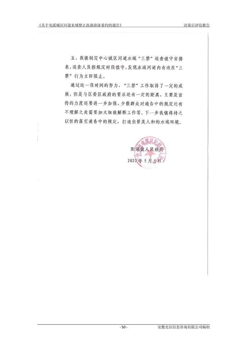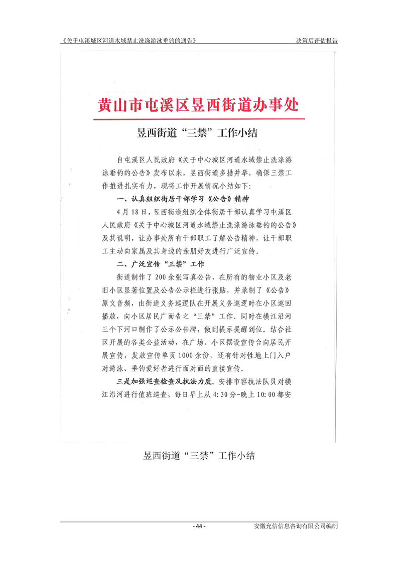 《关于屯溪城区河道水域禁止洗涤游泳垂钓的通告》决策后评估报告