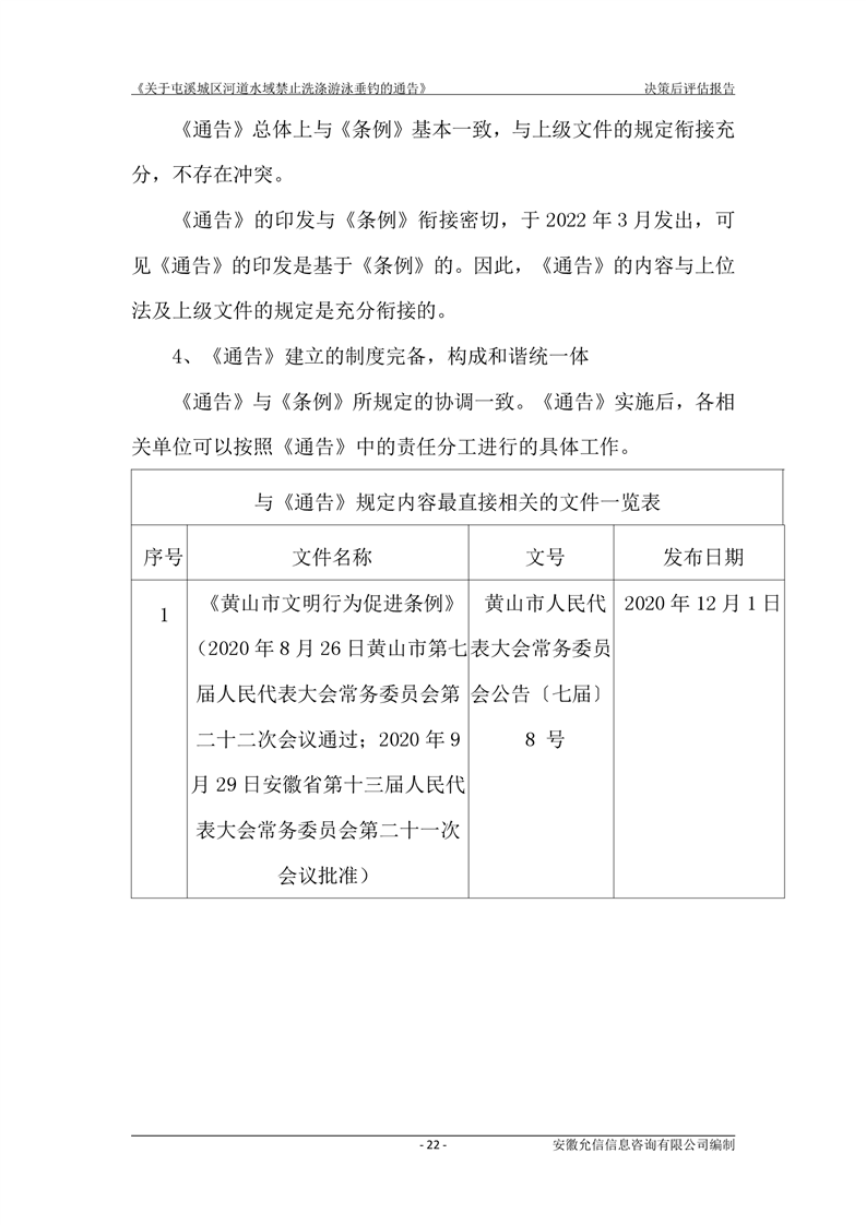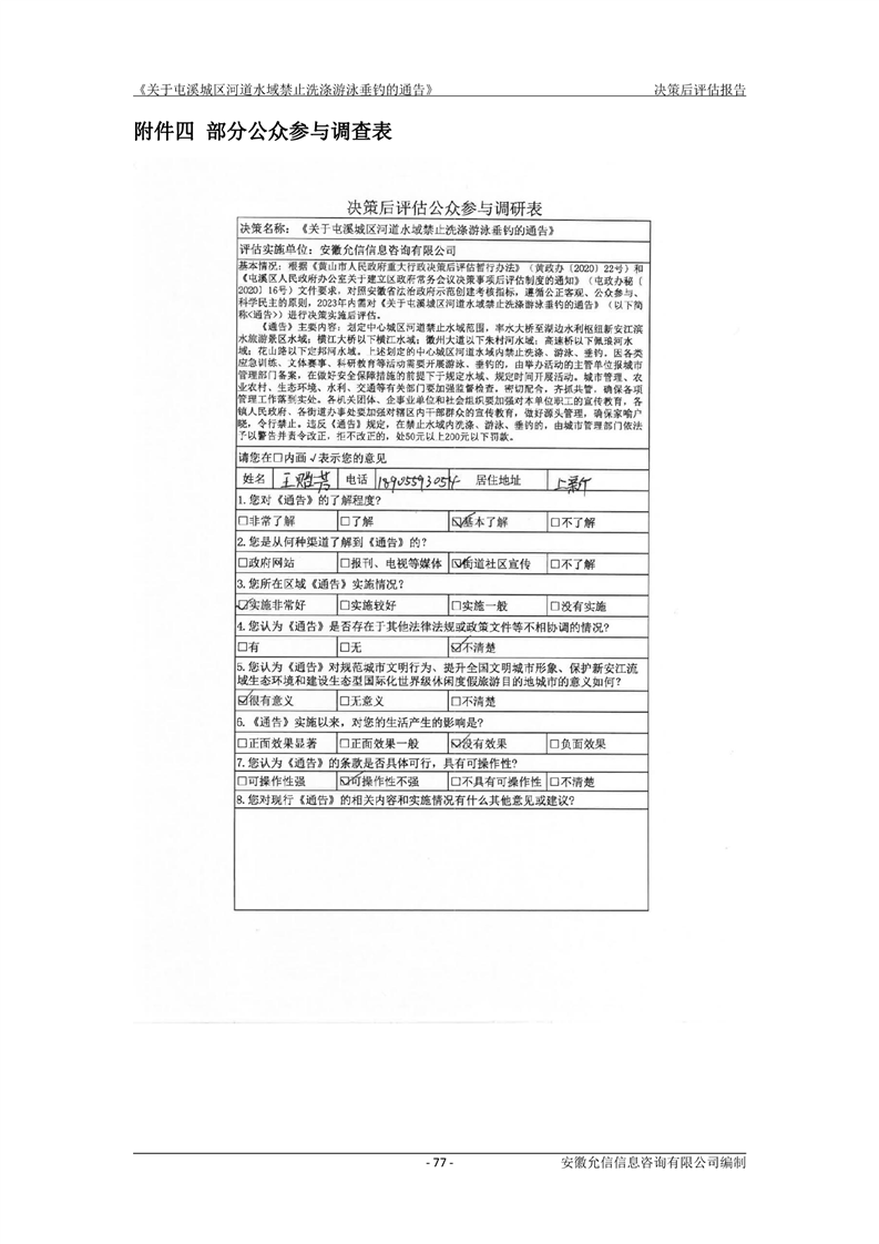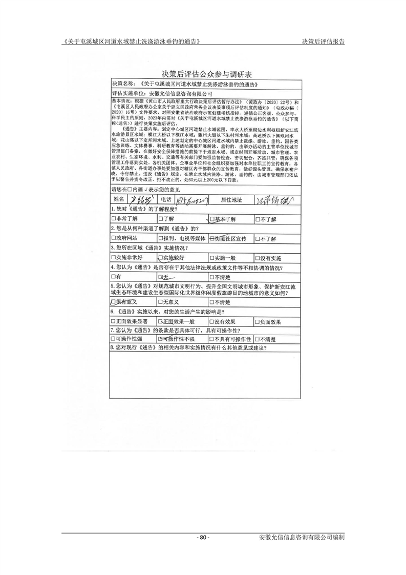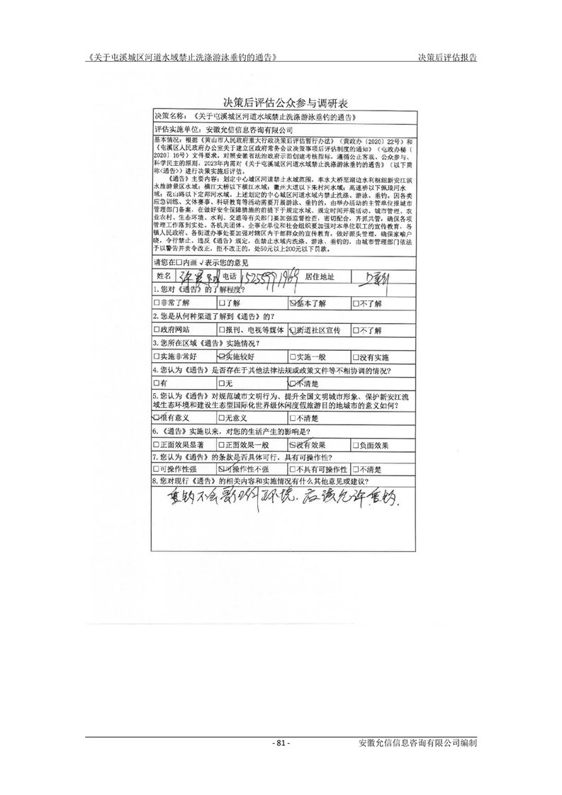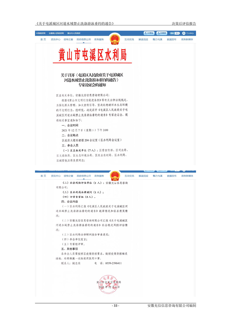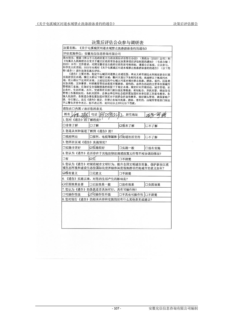 《关于屯溪城区河道水域禁止洗涤游泳垂钓的通告》决策后评估报告
