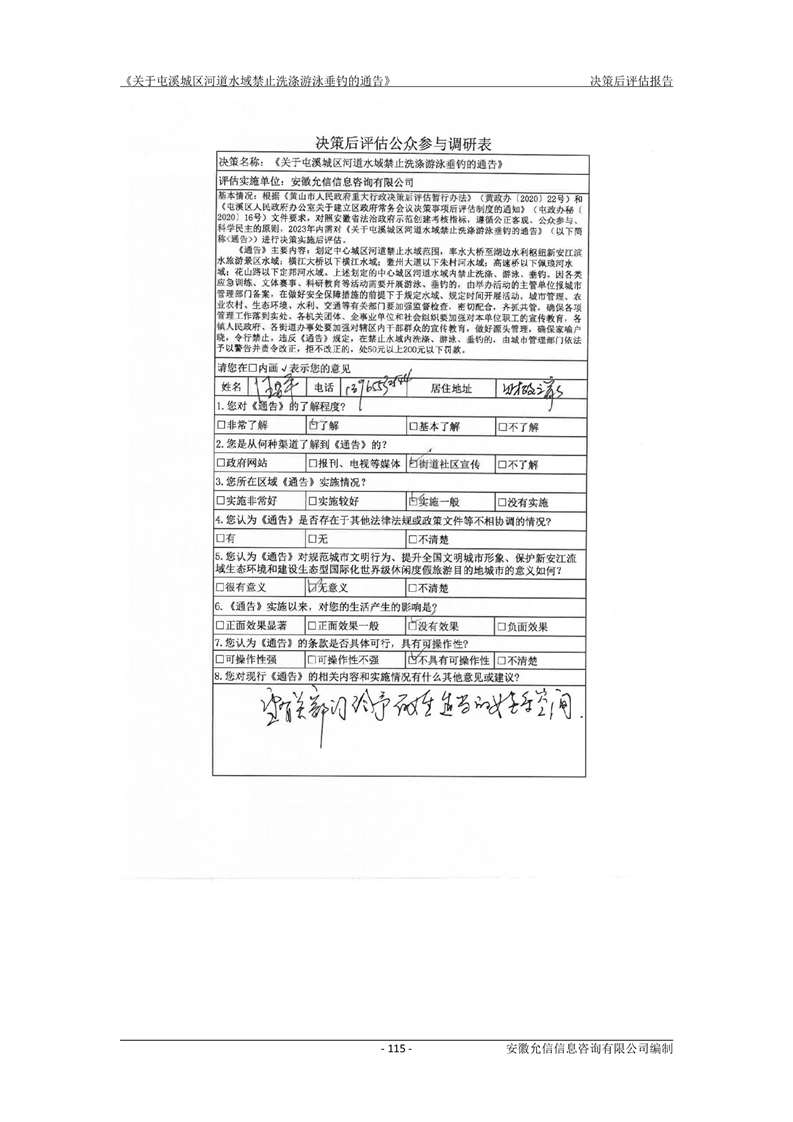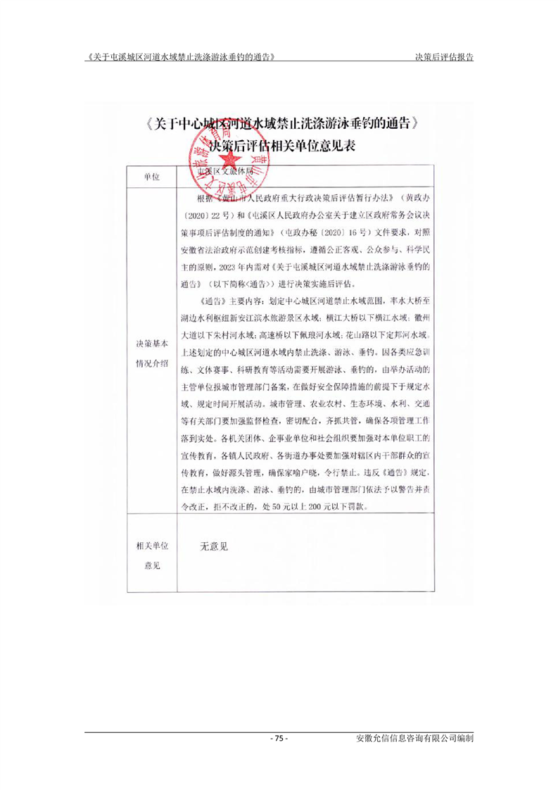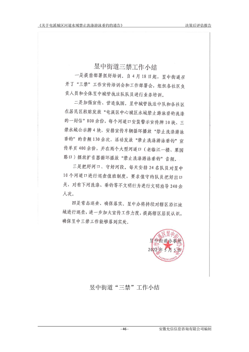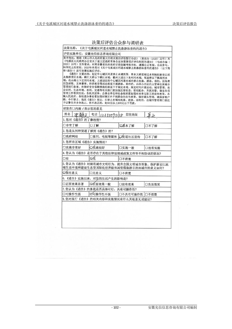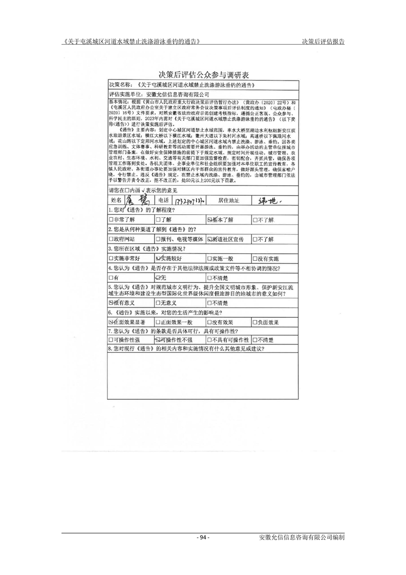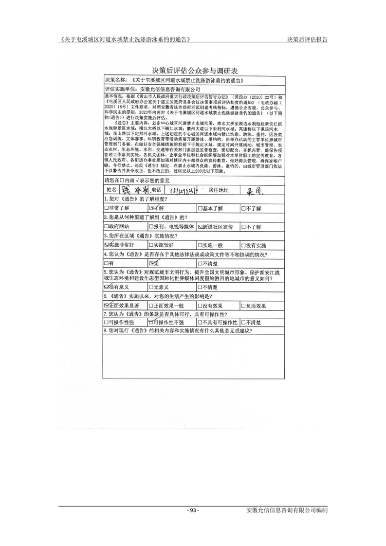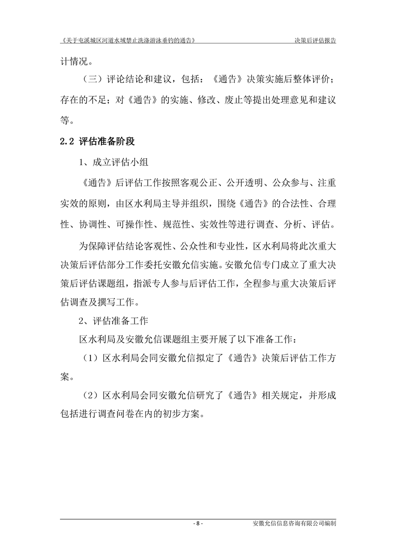 《关于屯溪城区河道水域禁止洗涤游泳垂钓的通告》决策后评估报告