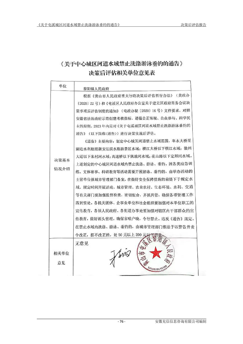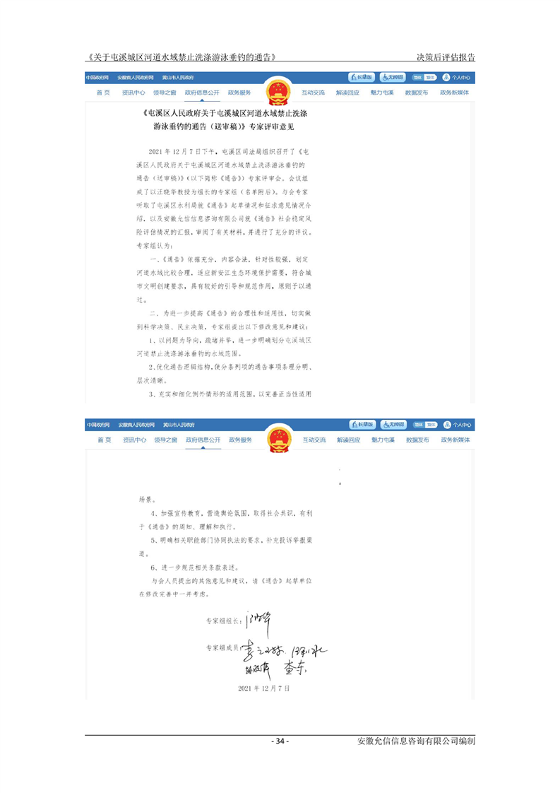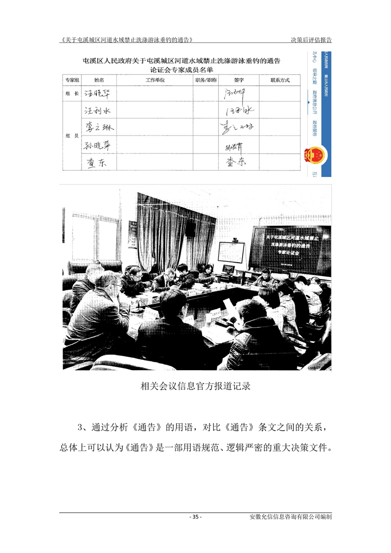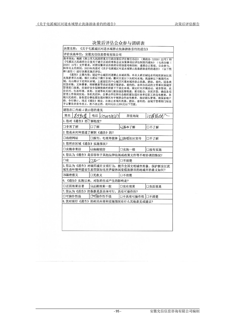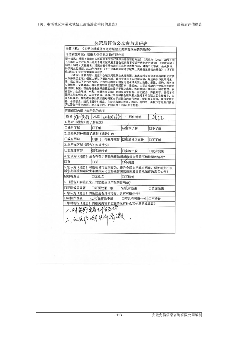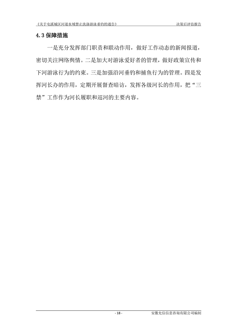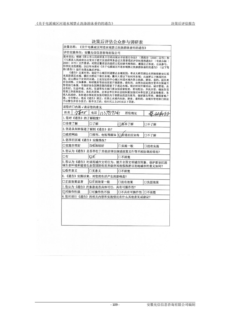 《关于屯溪城区河道水域禁止洗涤游泳垂钓的通告》决策后评估报告