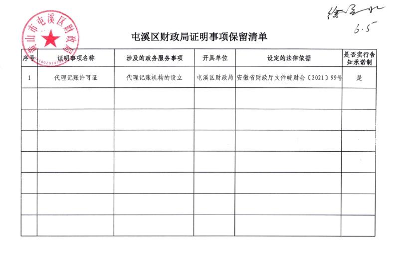 | 屯溪区文旅体局证明事项保留清单 | |||||