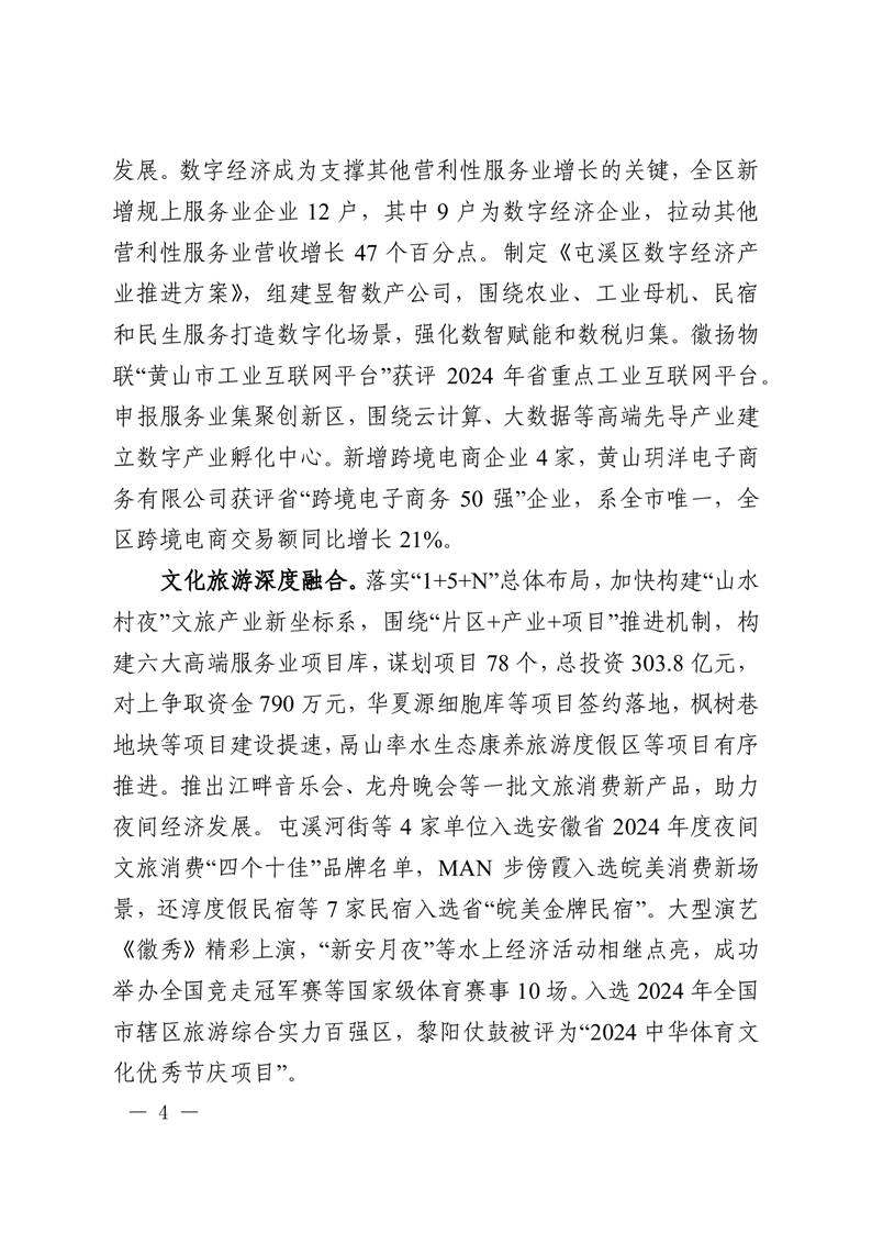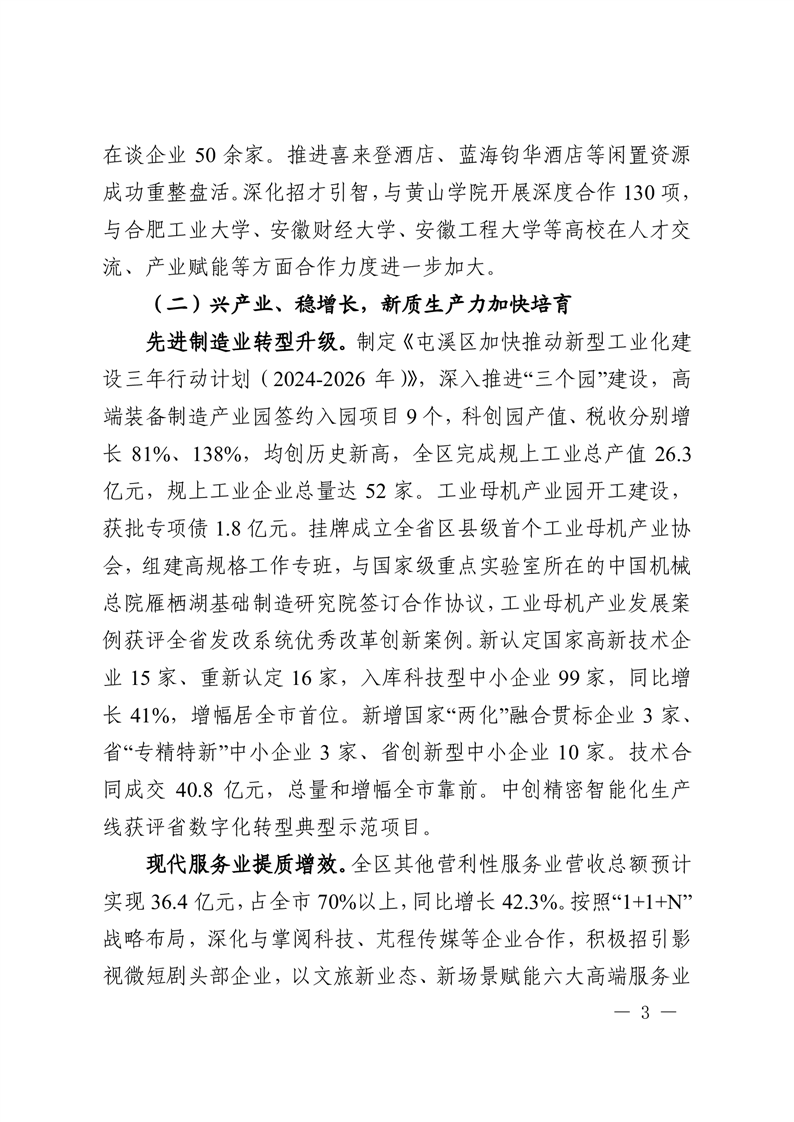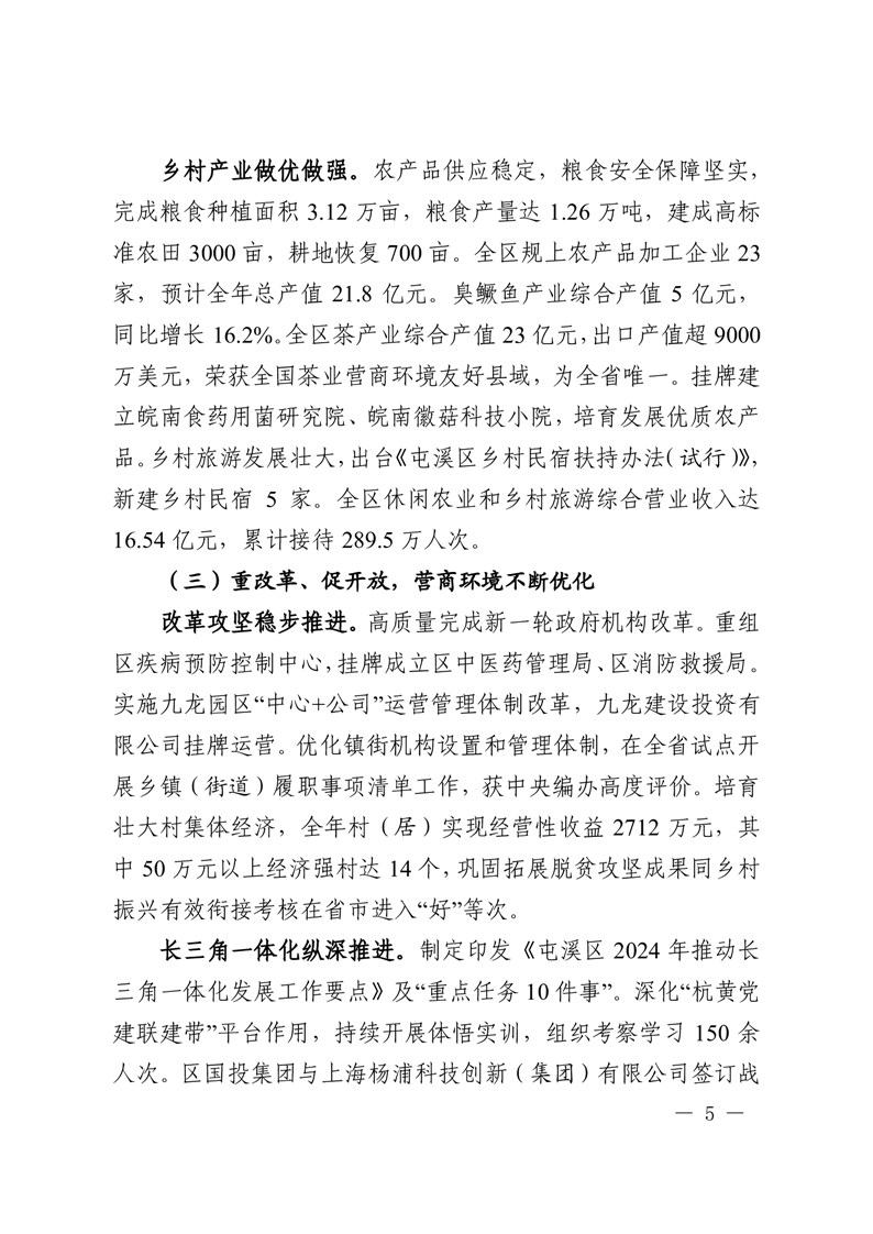 黄山市屯溪区2024年国民经济和社会发展计划执行情况与2025年计划草案的报告