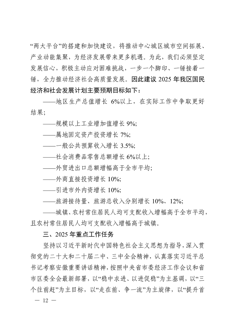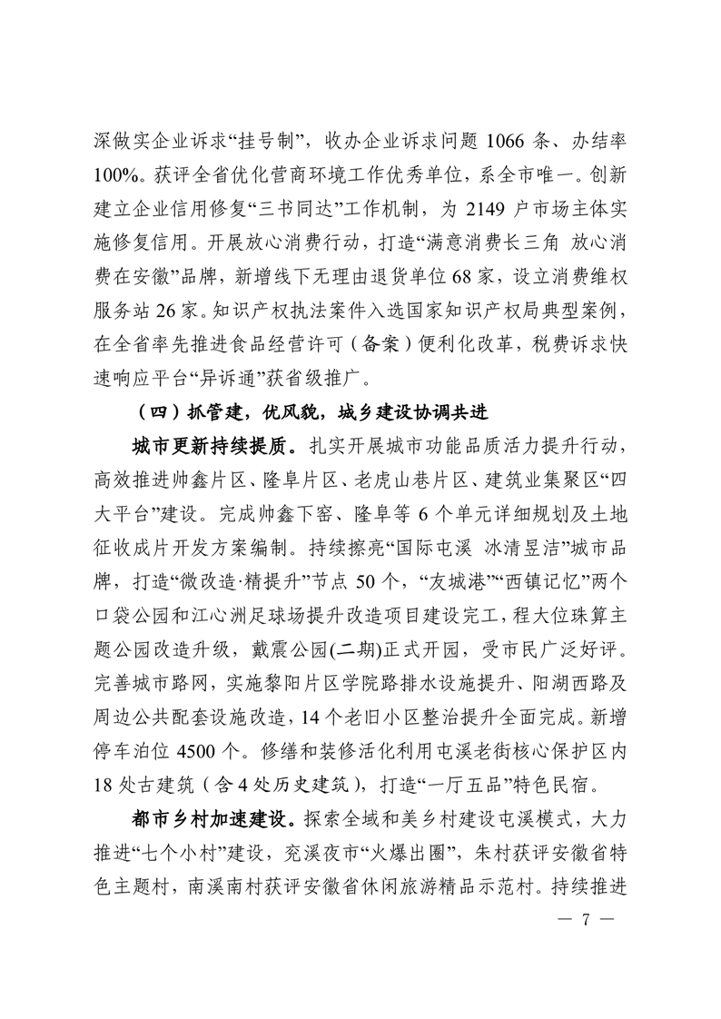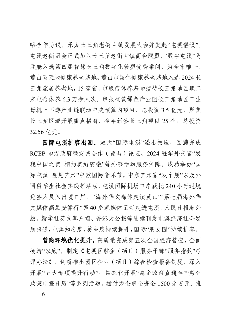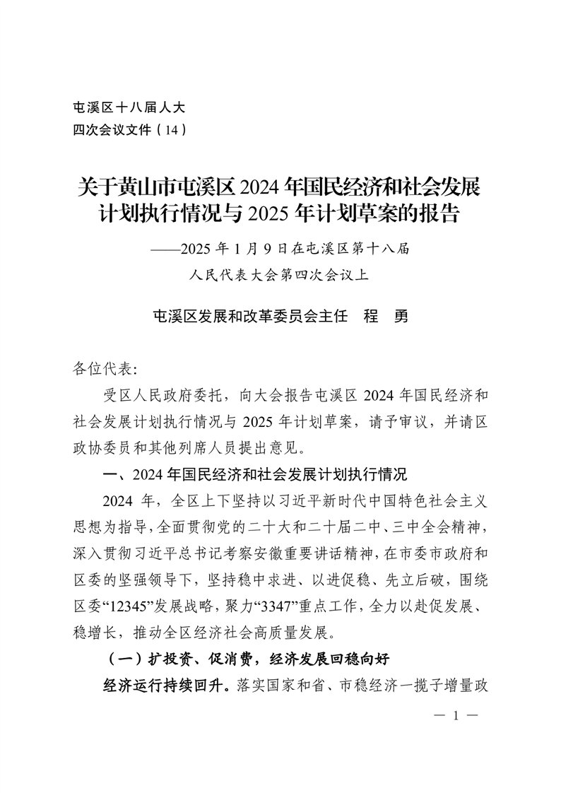 黄山市屯溪区2024年国民经济和社会发展计划执行情况与2025年计划草案的报告
