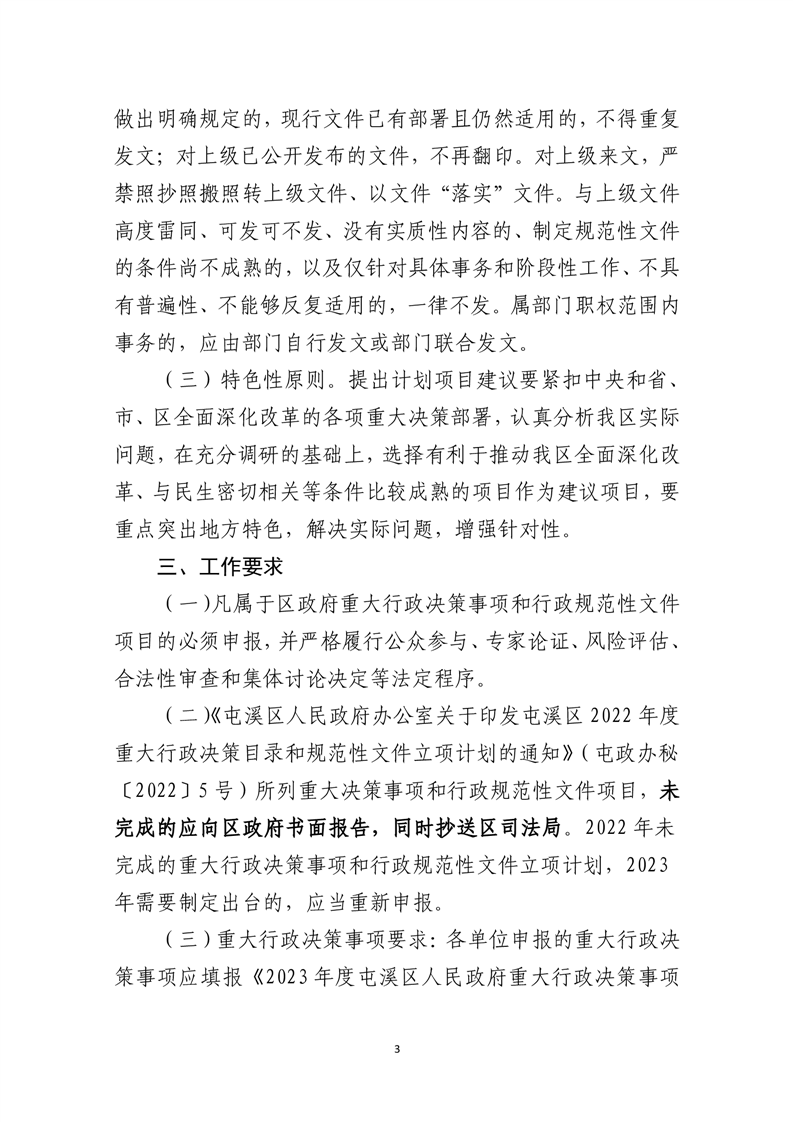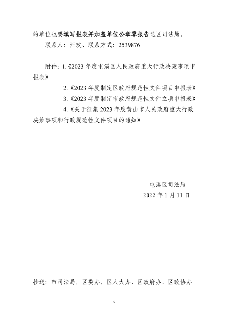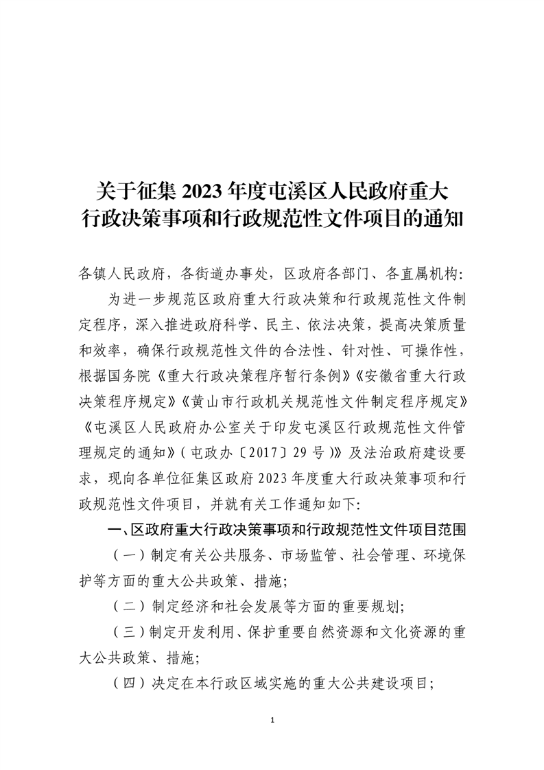 关于征集2023年度屯溪区人民政府重大行政决策事项和行政规范性文件项目的通知