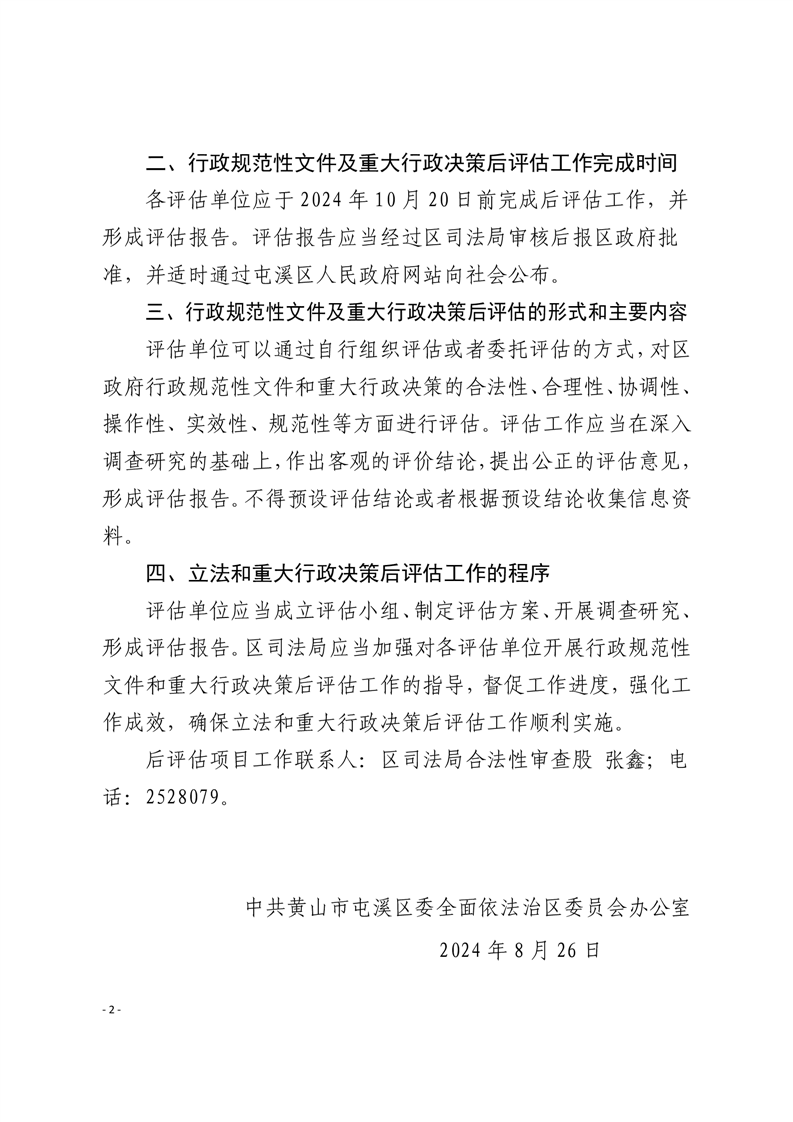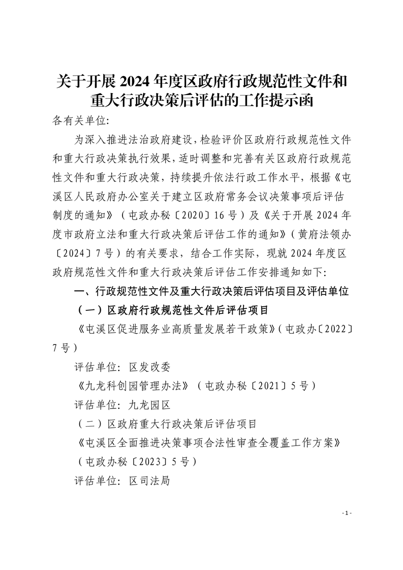 关于开展2024年度区政府行政规范性文件和重大行政决策后评估的工作提示函