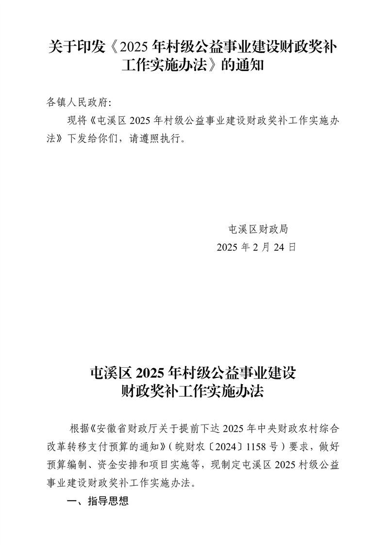 屯溪区2025年村级公益事业建设财政奖补工作实施办法