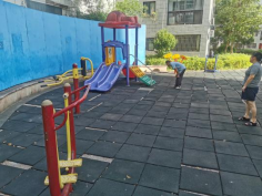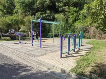 1.告示牌 2.双位太空漫步机 3.跷跷板 4.手摇按摩练习器 5.压腿勾腿训练器 6.三位扭腰器 7.健身车 (原器材破损严重,超使用年限) |