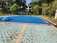 1.告示牌 2.双位太空漫步机 3.跷跷板 4.压腿勾腿训练器 5.健身车 6.乒乓球桌1个 (原器材破损严重、超使用年限) |