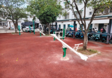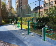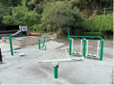 1.告示牌 2.双位太空漫步机 3.跷跷板 4.手摇按摩练习器 5.压腿勾腿训练器 6.三位扭腰器 (原器材超使用年限) |