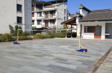 1.告示牌 2.双位太空漫步机 3.跷跷板 4.压腿勾腿训练器 5.健身车 6.乒乓球桌1个 (原器材破损严重、超使用年限) |