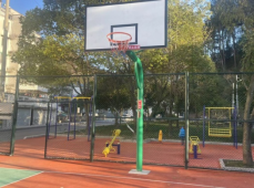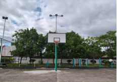 1.告示牌 2.双位太空漫步机 3.跷跷板 4.手摇按摩练习器 5.压腿勾腿训练器 6.健身车 7.篮球架2个 |