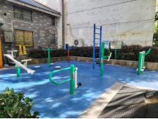 1.告示牌 2.双位太空漫步机 3.手摇按摩练习器 4.三位扭腰器 5.健身车 (老小区,无健身器材) |