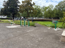 1.告示牌 2.双位太空漫步机 3.跷跷板 4.手摇按摩练习器 5.压腿勾腿训练器 6.三位扭腰器 7.健身车 (原器材破损严重,超使用年限) |