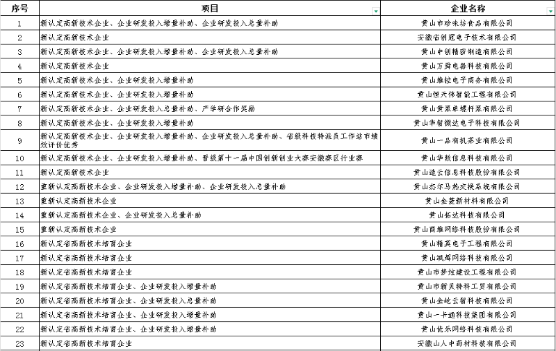 2022年度屯溪区支持科技创新奖励项目资金明细表