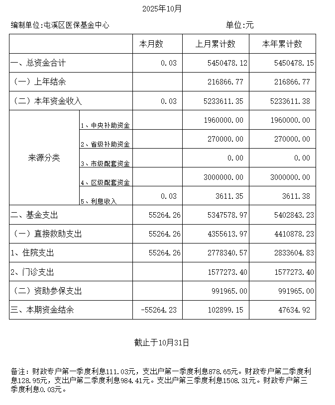 2025年10月屯溪区城乡医疗救助资金筹集及使用情况表