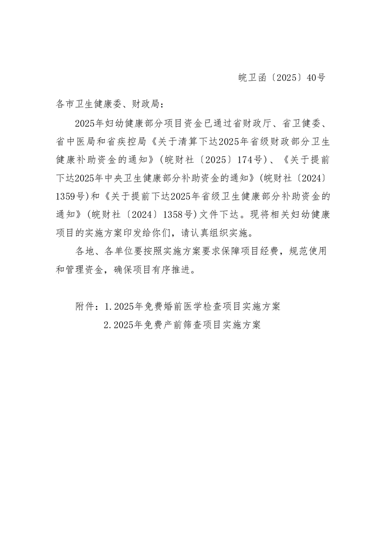 关于印发2025年妇幼健康工作部分项目实施方案的通知