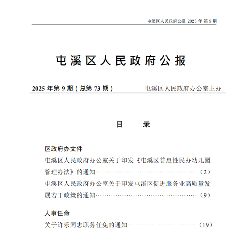屯溪区人民政府公报 2025 年 第 9 期.doc