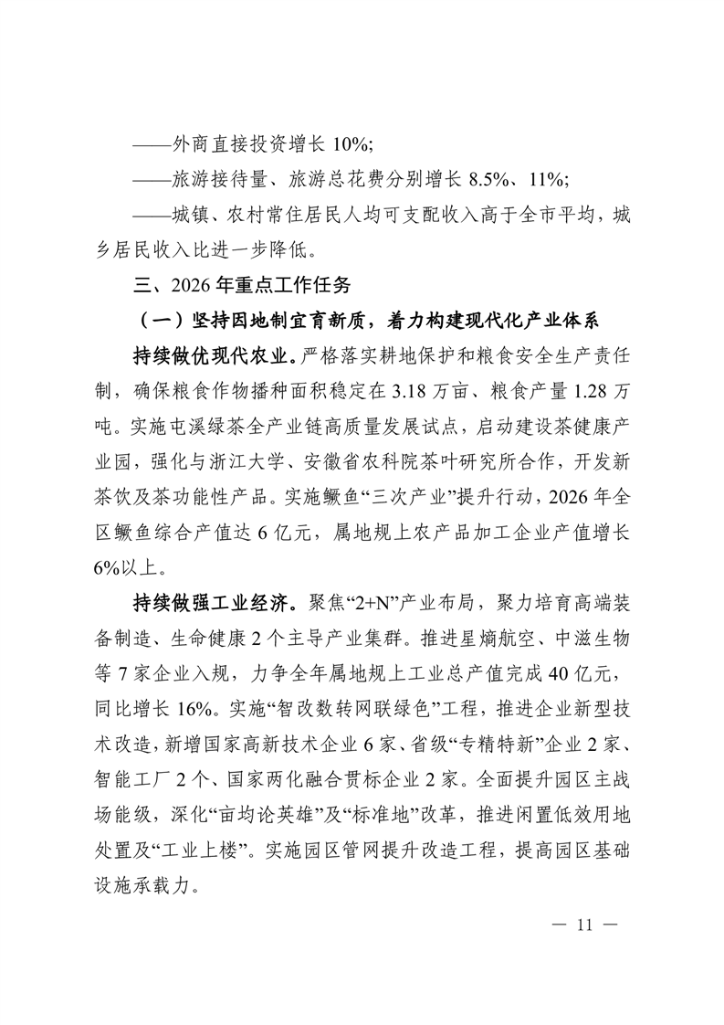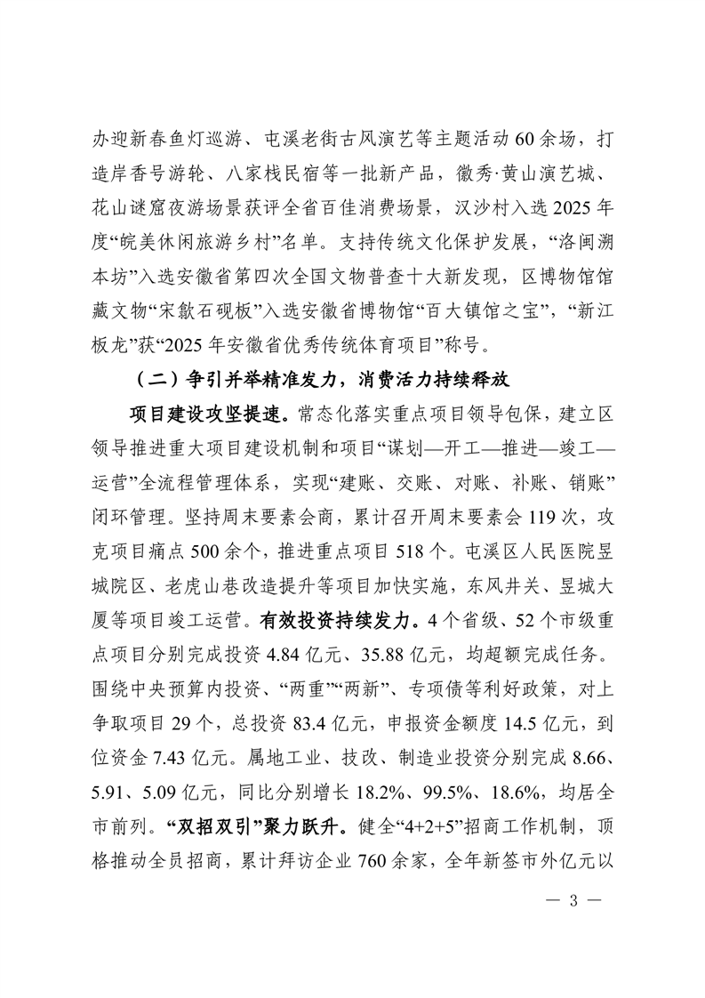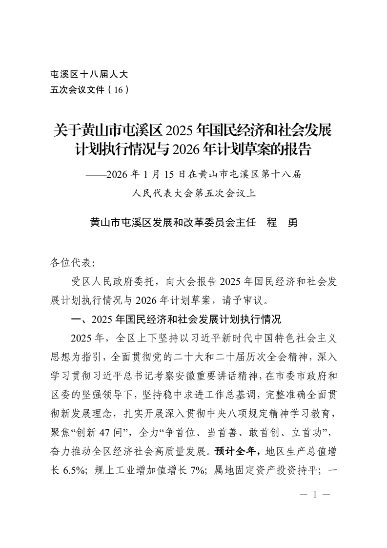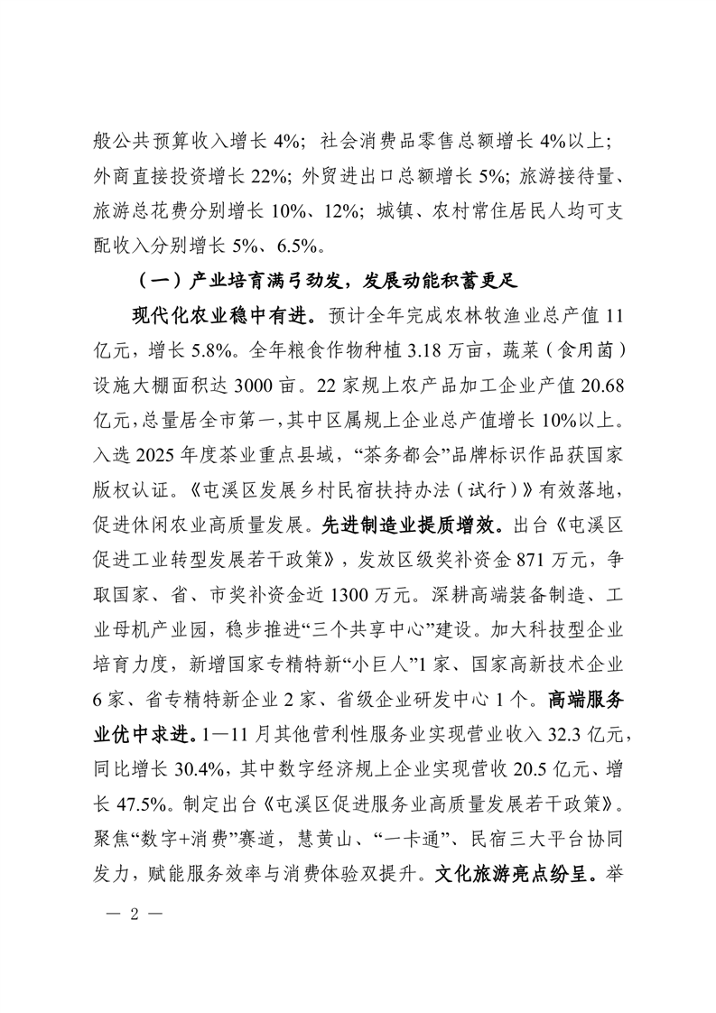 黄山市屯溪区2025年国民经济和社会发展计划执行情况与2026年计划草案的报告