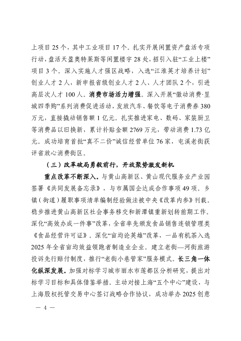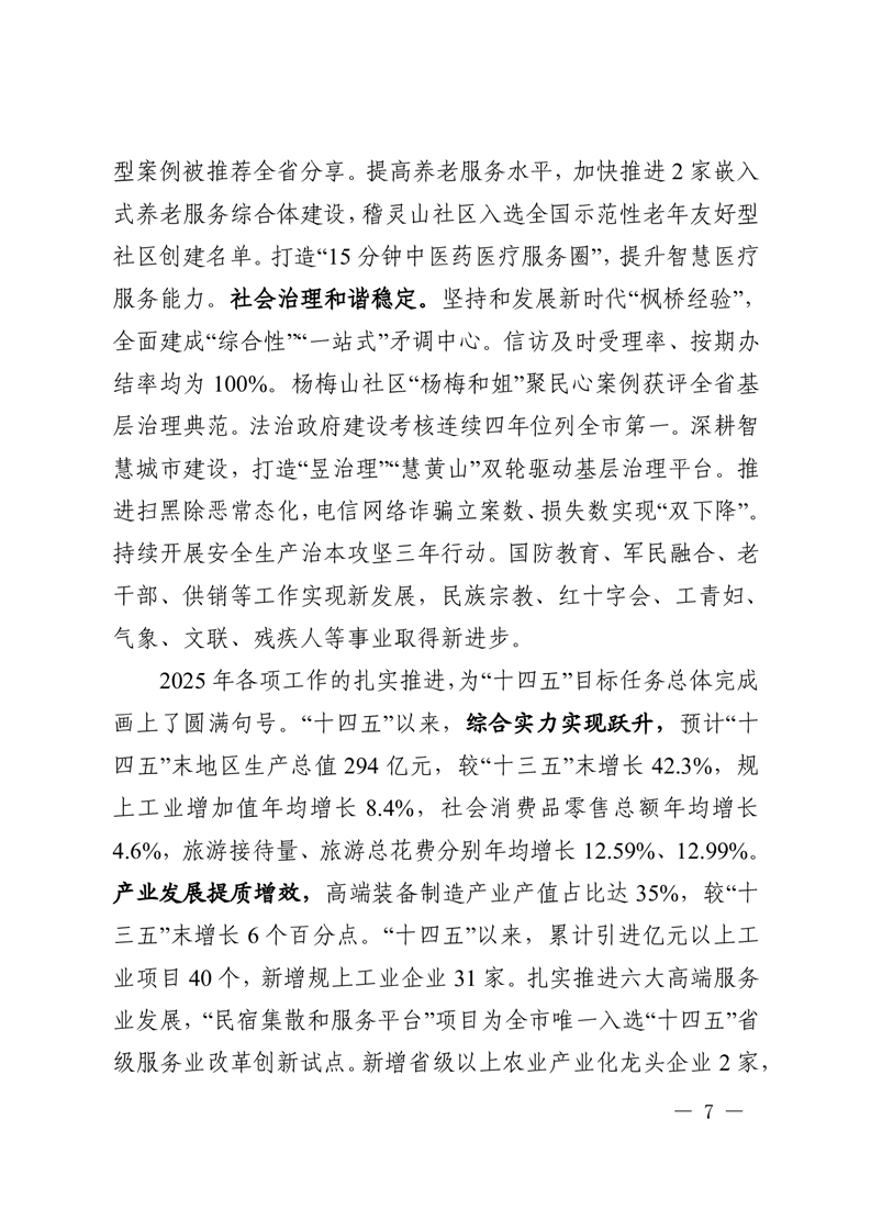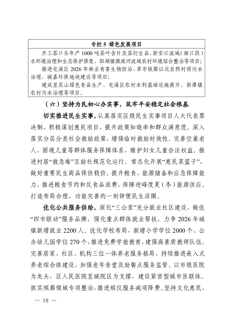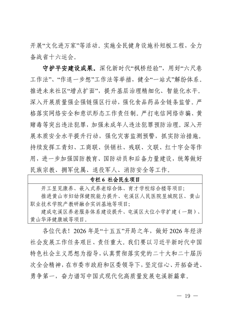 黄山市屯溪区2025年国民经济和社会发展计划执行情况与2026年计划草案的报告