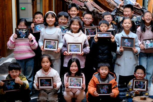 经过一个多小时的精心制作,一匹匹栩栩如生、流光溢彩的“福马”在大家的巧手下诞生了。阳光透过窗户洒在螺钿上,折射出七彩的光芒,与孩子们脸上的笑容交相辉映。