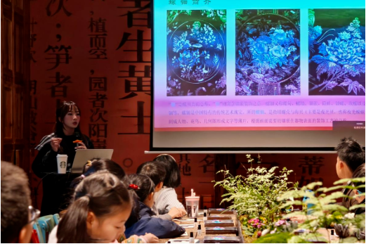 “螺钿,是指用螺壳与海贝磨制成人物、花鸟等薄片,根据画面需要而镶嵌在器物表面的装饰工艺……”活动伊始,博物馆工作人员通过生动有趣的PPT展示,向大家介绍了螺钿工艺的历史渊源和制作流程。当孩子们了解到,那些流光溢彩的图案竟是由一片片薄如蝉翼的贝壳镶嵌而成时,现场发出了阵阵惊叹。
