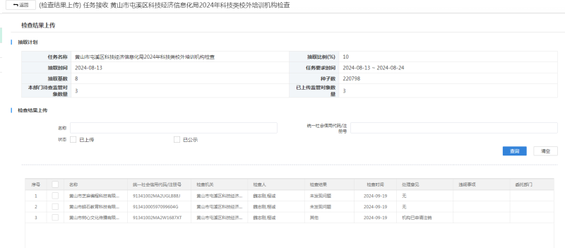 2024年“双随机、一公开”抽查事项:黄山市屯溪区科技经济信息化局2024年科技类校外培训机构检查