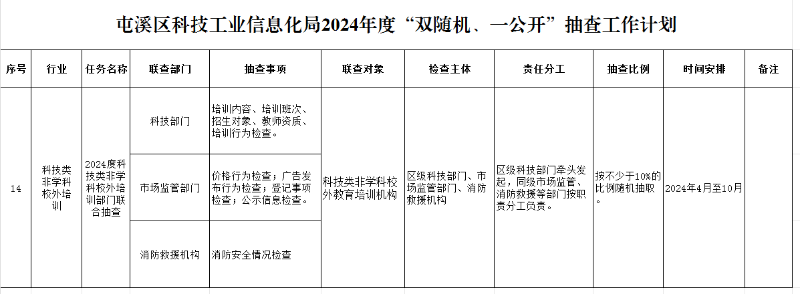 屯溪区科技工业信息化局2024年度“双随机、一公开”抽查工作计划
