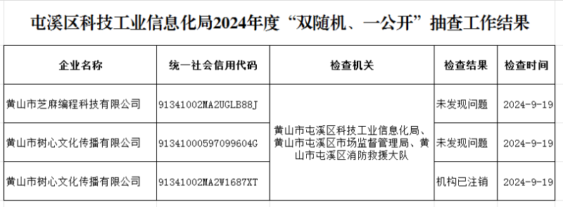 屯溪区科技工业信息化局2024年度“双随机、一公开”抽查工作结果