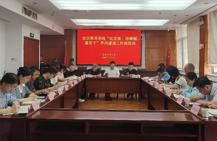 会议强调,各学校党组织要进一步提高政治站位,强化思想认识,紧扣市委、区委部署要求,以“争首位、当首善、敢首创、立首功”为目标引领,将“比发展、讲奉献、重实干”作风建设工作与巩固全区教育系统深入贯彻中央八项规定精神学习教育成果紧密结合,扎实推进。要全面梳理盘点前期工作开展情况,分析短板弱项,细化责任落实,建立工作台账,全力推动下一阶段工作高效落实。