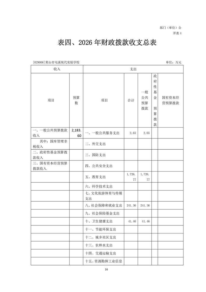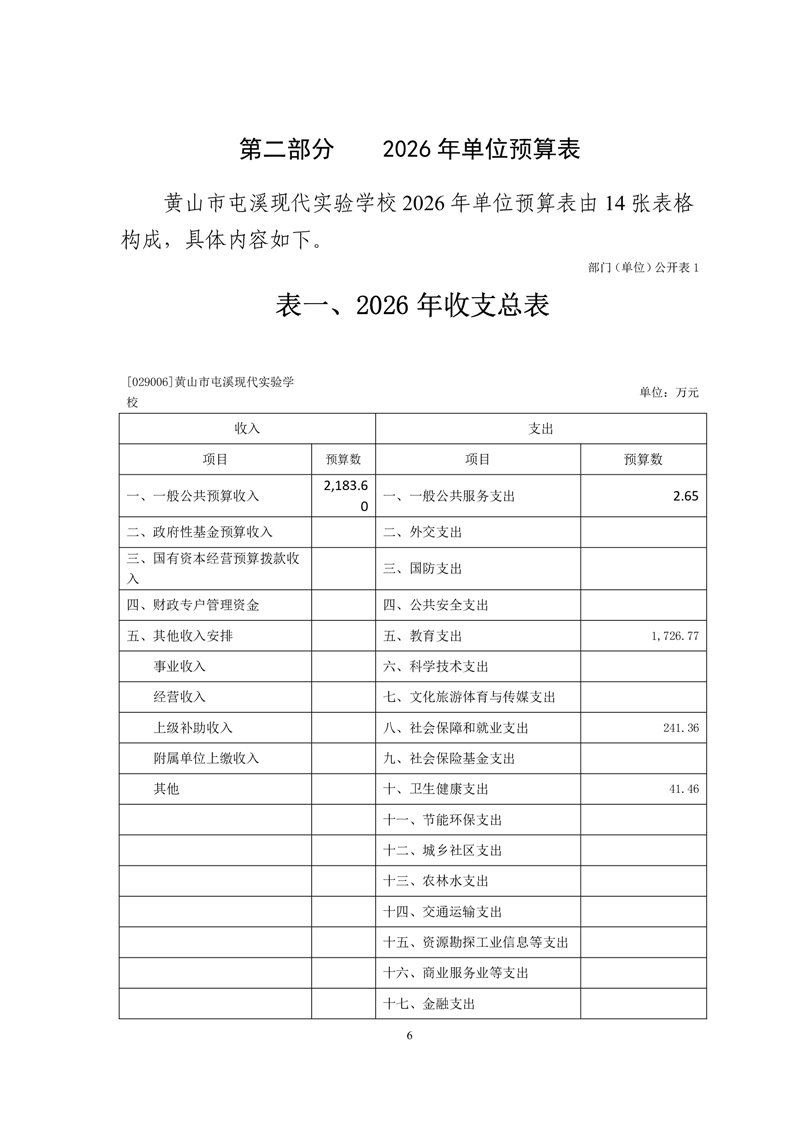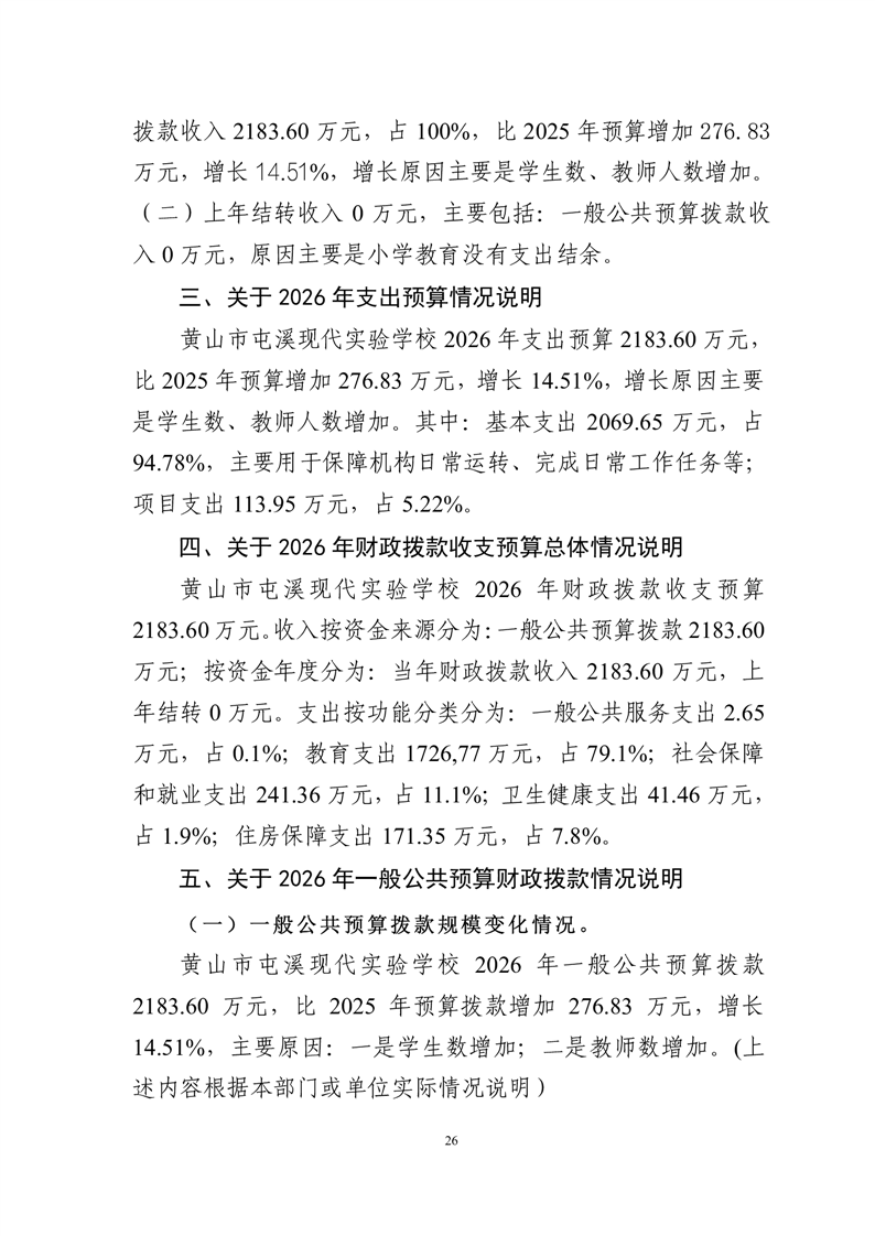 黄山市屯溪现代实验学校2026年单位预算.pdf