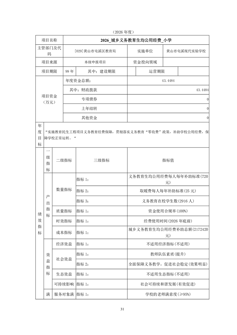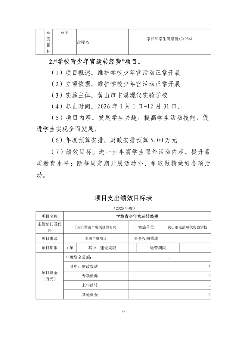 黄山市屯溪现代实验学校2026年度项目支出绩效目标.zip