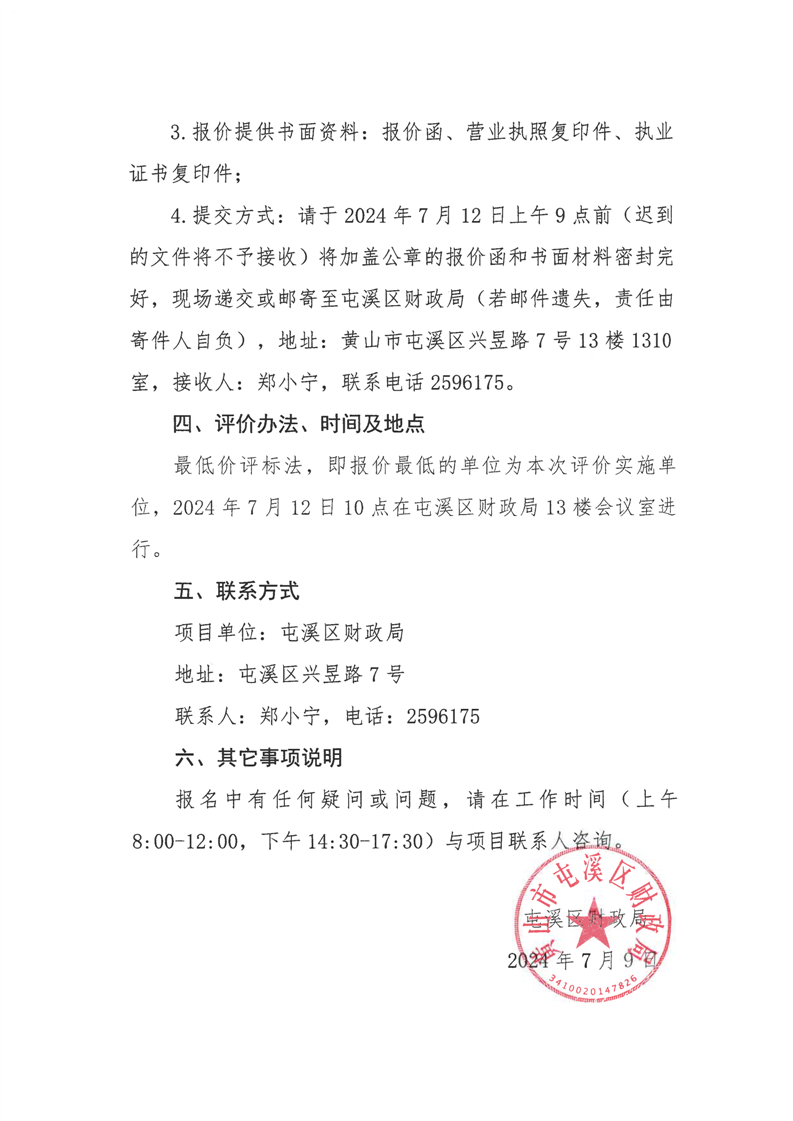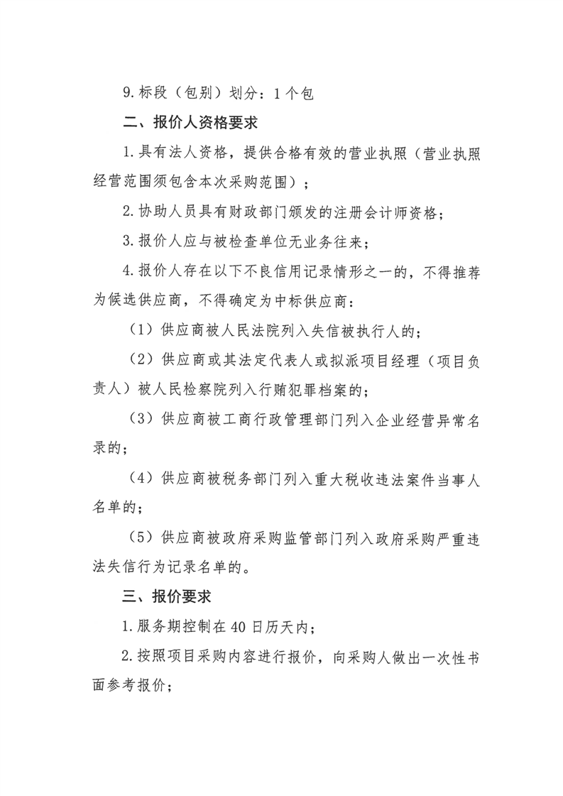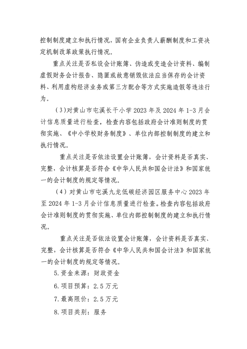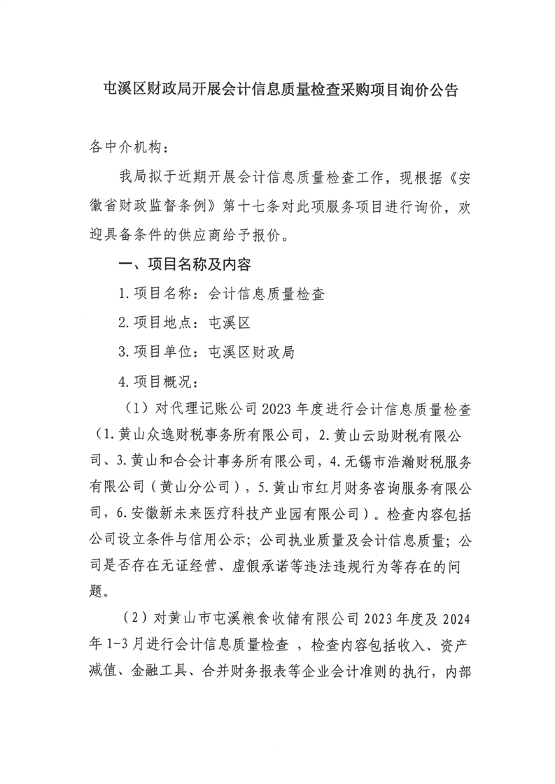 屯溪区财政局开展会计信息质量检查采购项目询价公告