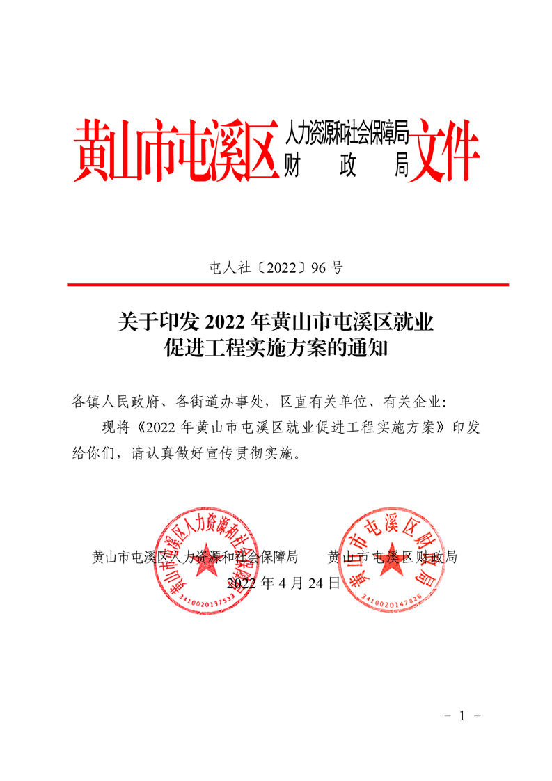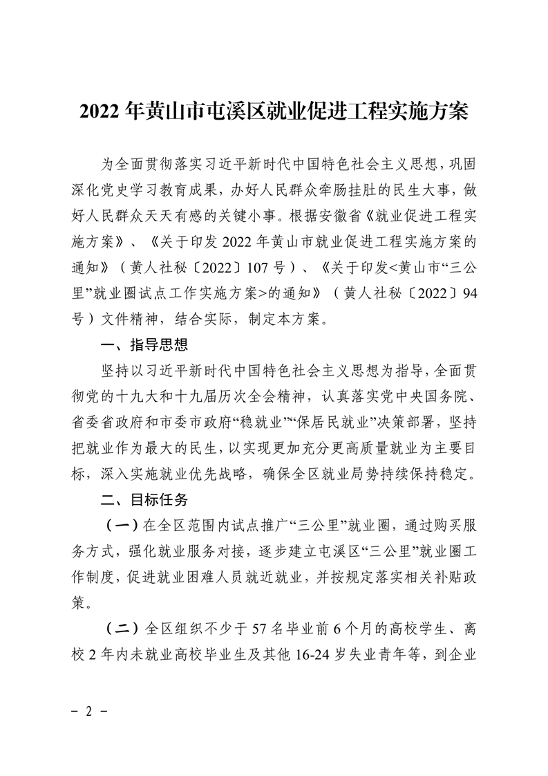 关于印发《2022年黄山市屯溪区就业促进工程实施方案》的通知