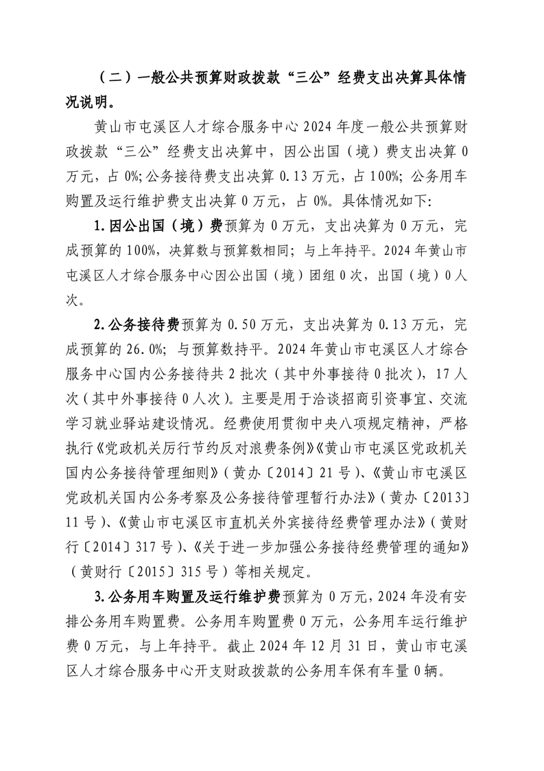 2024年度黄山市屯溪区人才综合服务中心“三公”经费公开