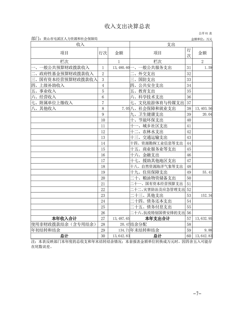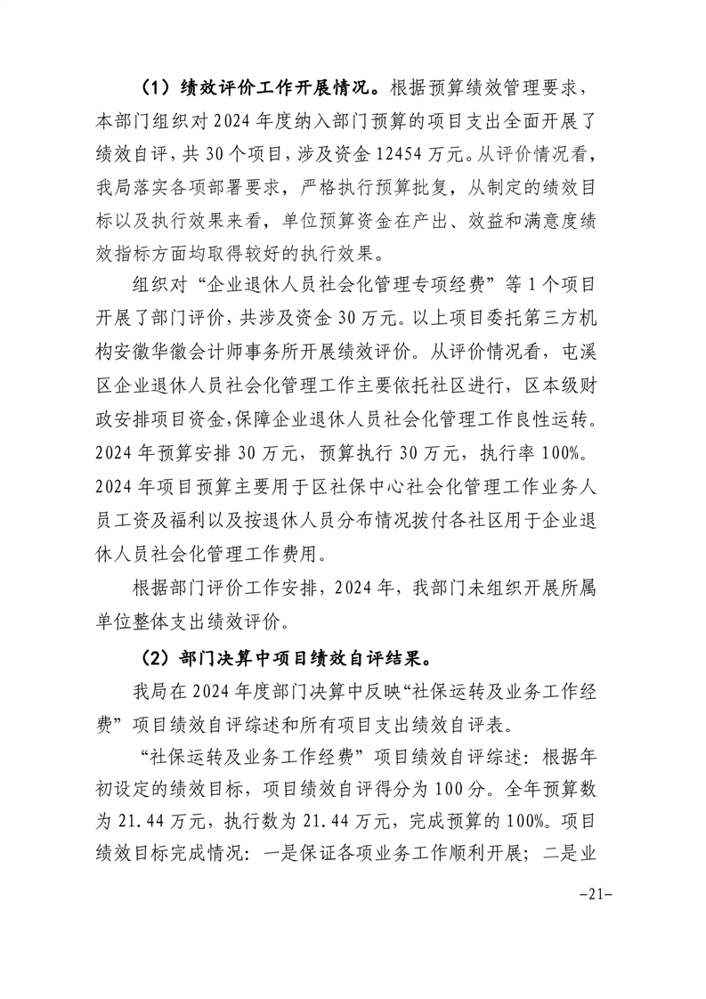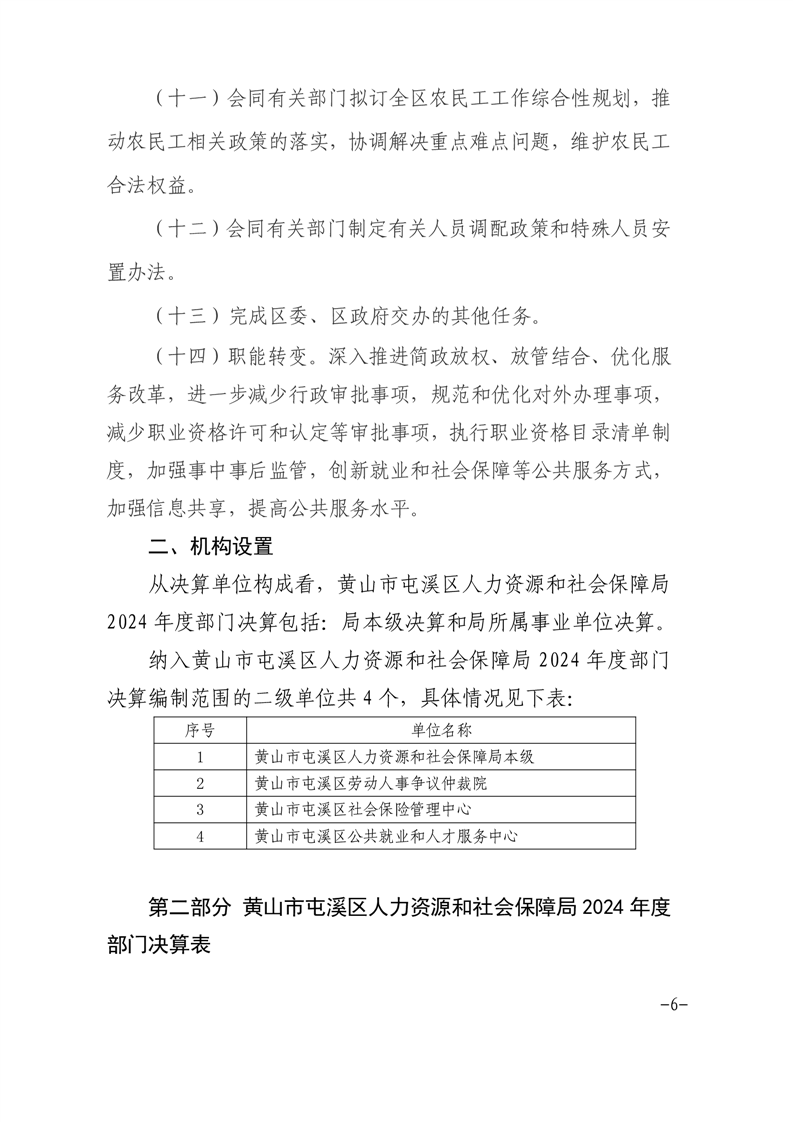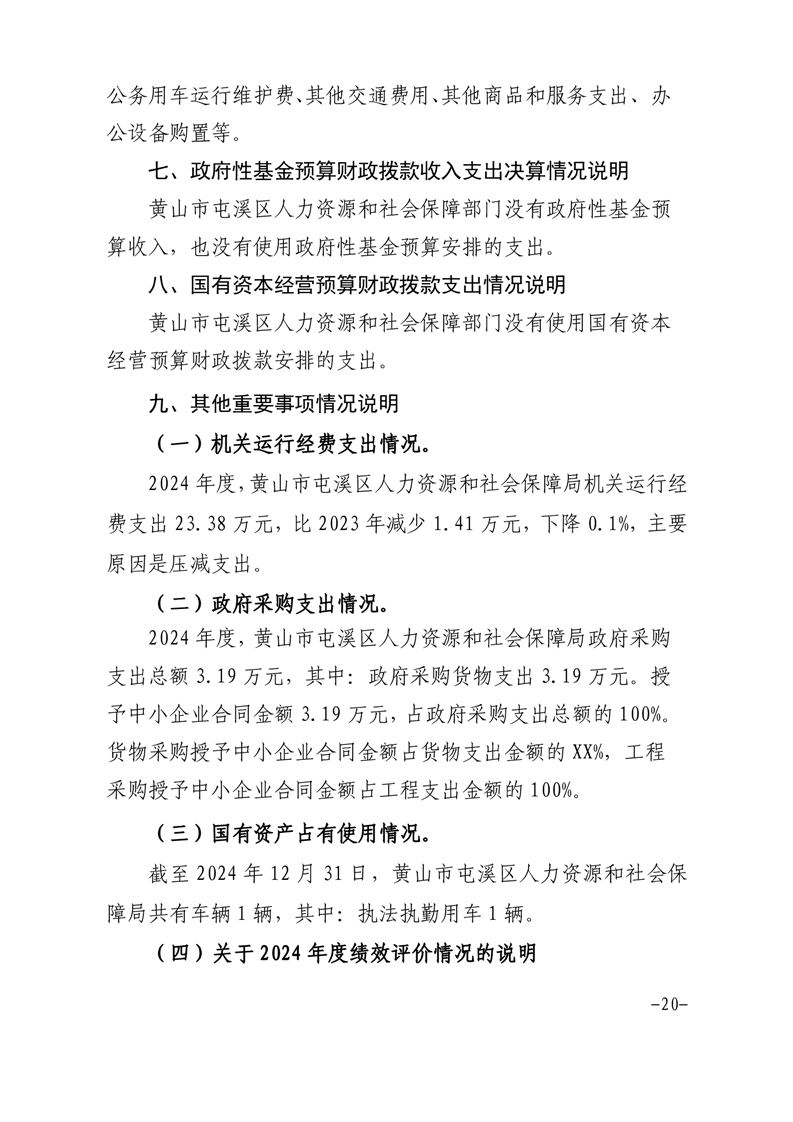 黄山市屯溪区人力资源和社会保障局2024年度部门决算公开