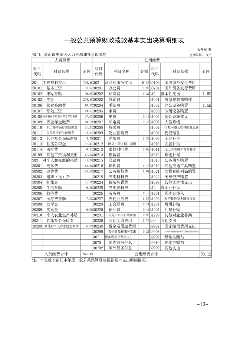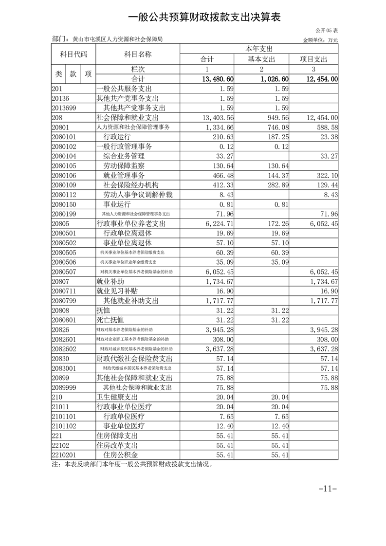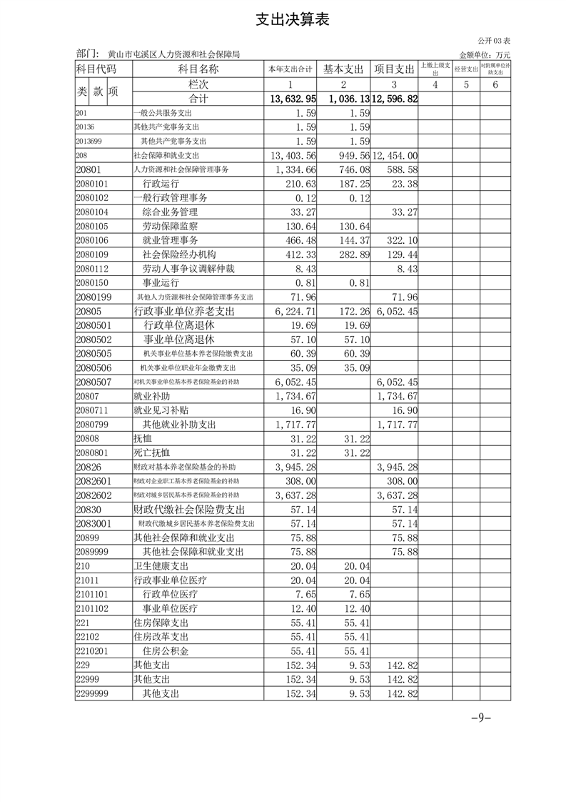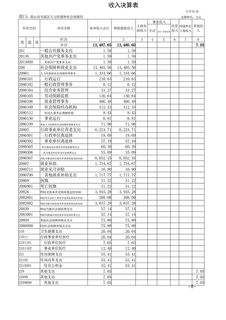 黄山市屯溪区人力资源和社会保障局2024年度部门决算公开