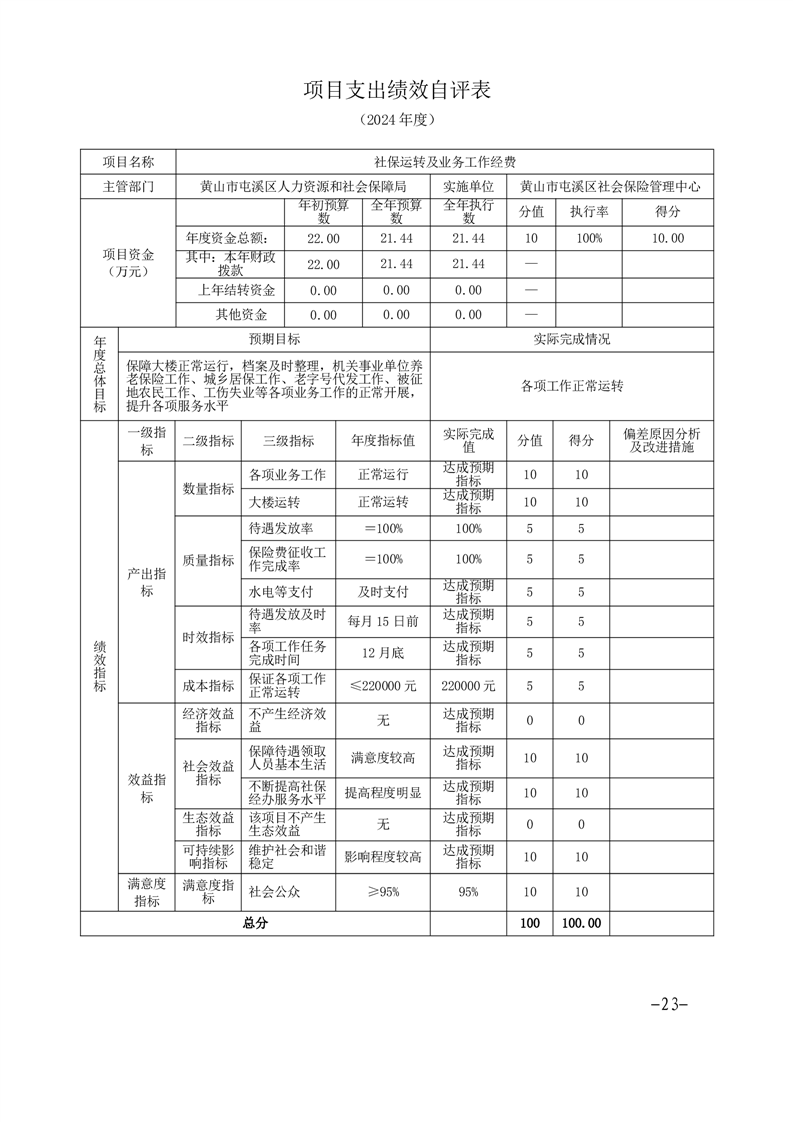 附件1、黄山市屯溪区人力资源和社会保障局2024年部门项目支出绩效自评表.doc