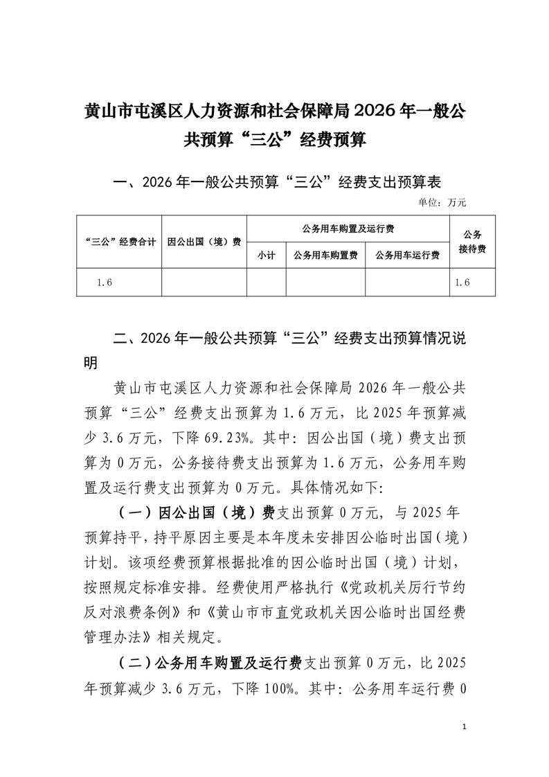 黄山市屯溪区人力资源和社会保障局2026年一般公共预算“三公”经费单位预算.pdf